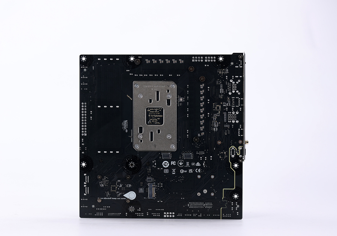 配置方面,主板採用8層服務器級PCB,再加上2oz厚度銅覆蓋,信號傳輸穩定有保障。供電方面,主板採用12+2+1 Duet Rail智能供電設計,單路支持60A輸出。其中12相爲VCore核心供電,2相爲SOC供電,1相爲MISC供電,再搭配上雙8Pin的外接供電,可以輕鬆拉滿銳龍9000系列處理器性能。