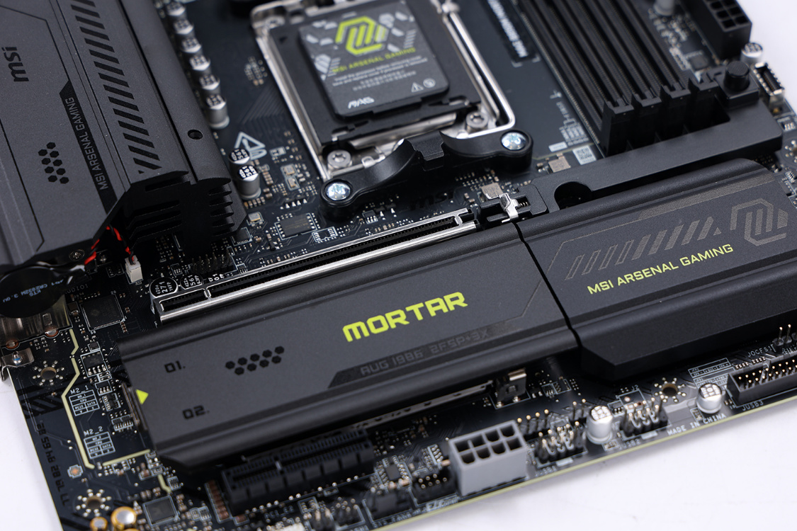 全新換裝的新一代B850M迫擊炮主板,辨識度依舊非常高。8層服務器級PCB,12+2+1相供電設計,堆料也可以稱得上是豪華。可以輕鬆拉滿97X,面對R9級的銳龍9000處理器,也基本沒啥壓力。微星全新一代的EZ DIY在這塊主板上也得到了廣泛應用(顯卡、固態、EZ Conn拓展),對玩家非常友好,而且價格還不貴。而主板搭載的內存超頻及內存BUFF(高效能模式、延遲殺手)功能設置,可以幫玩家更好的發揮D5內存性能,操作還簡單,小白玩家也能輕鬆上手。當然,實際裝機時,個人還是更傾向推薦搭配9600X/9700X裝機,更能突顯性價比。