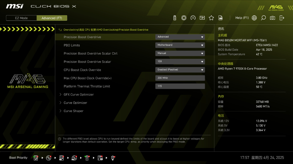 高級模式下,玩家則可以針對CPU的PBO超頻、內存頻率時序等功能進行更詳細的設置;