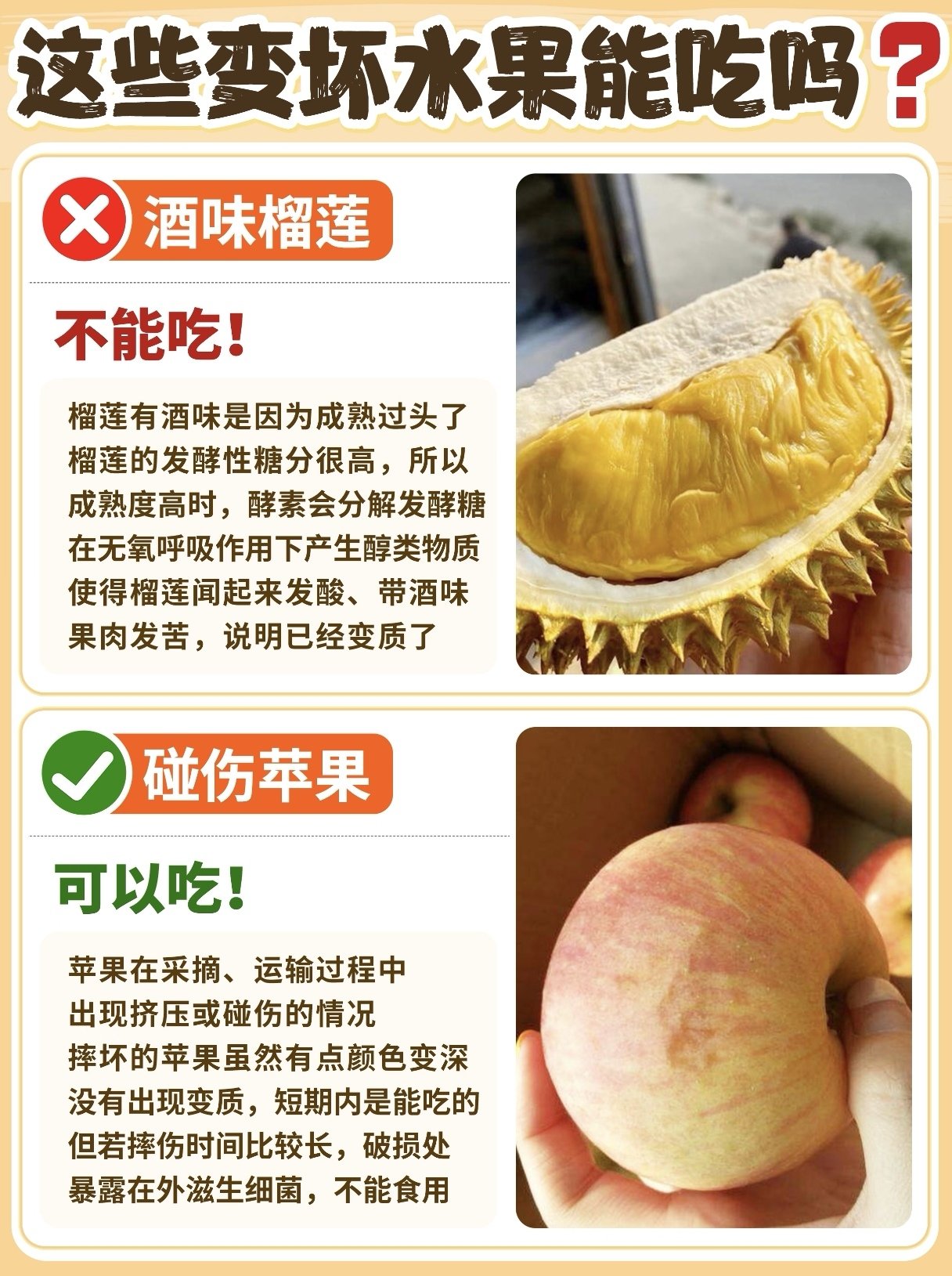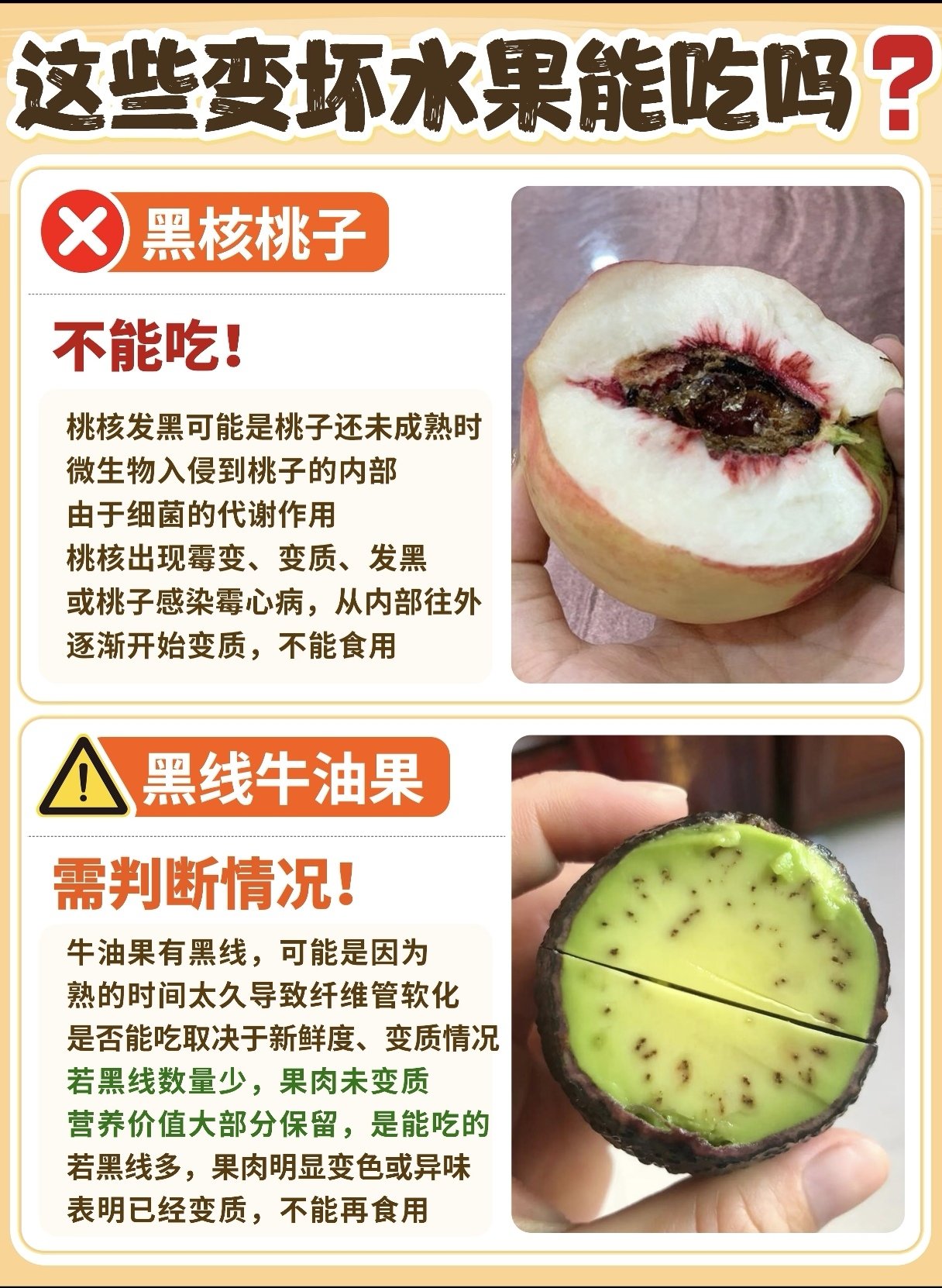 3️⃣如果是放冰箱凍傷的果子,可能會因爲低溫表面變色或者有傷口,削掉這部分是能喫的。