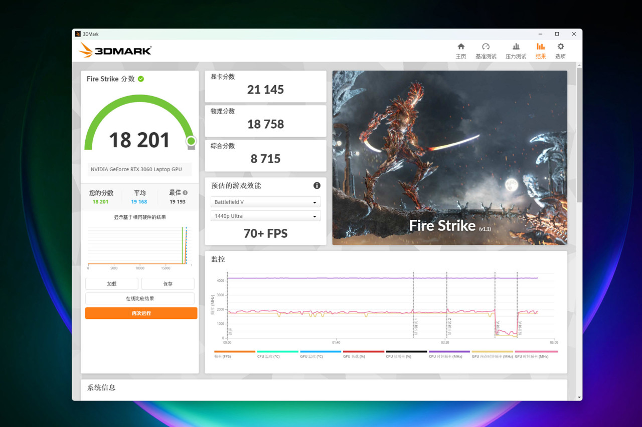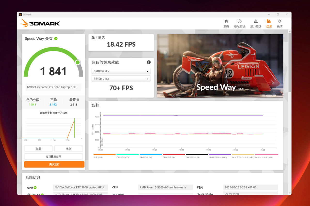 第三是單喫顯卡性能的動作類3A遊戲,案例選擇黑神話悟空官方測試工具(DX12),測試結果如下圖所示: