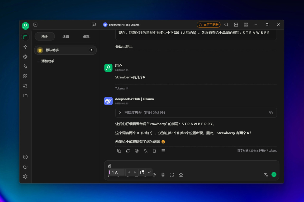 使用14B模型,推理效率爲每秒7Token,本地運算只能說很勉強,難堪大用,還是好好打遊戲和跑SD吧。