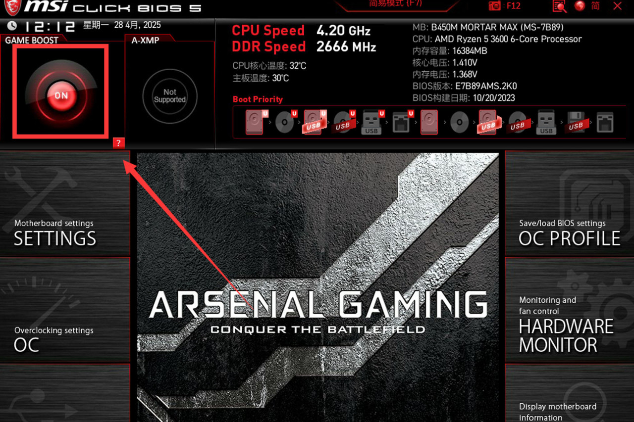 御三家主板一般都有一鍵超頻功能,比如這張微星就是進BIOS開啓Game Boost模式即可,有些主板還得手動開啓內存超頻(XMP/EXPO),手動超頻另說。