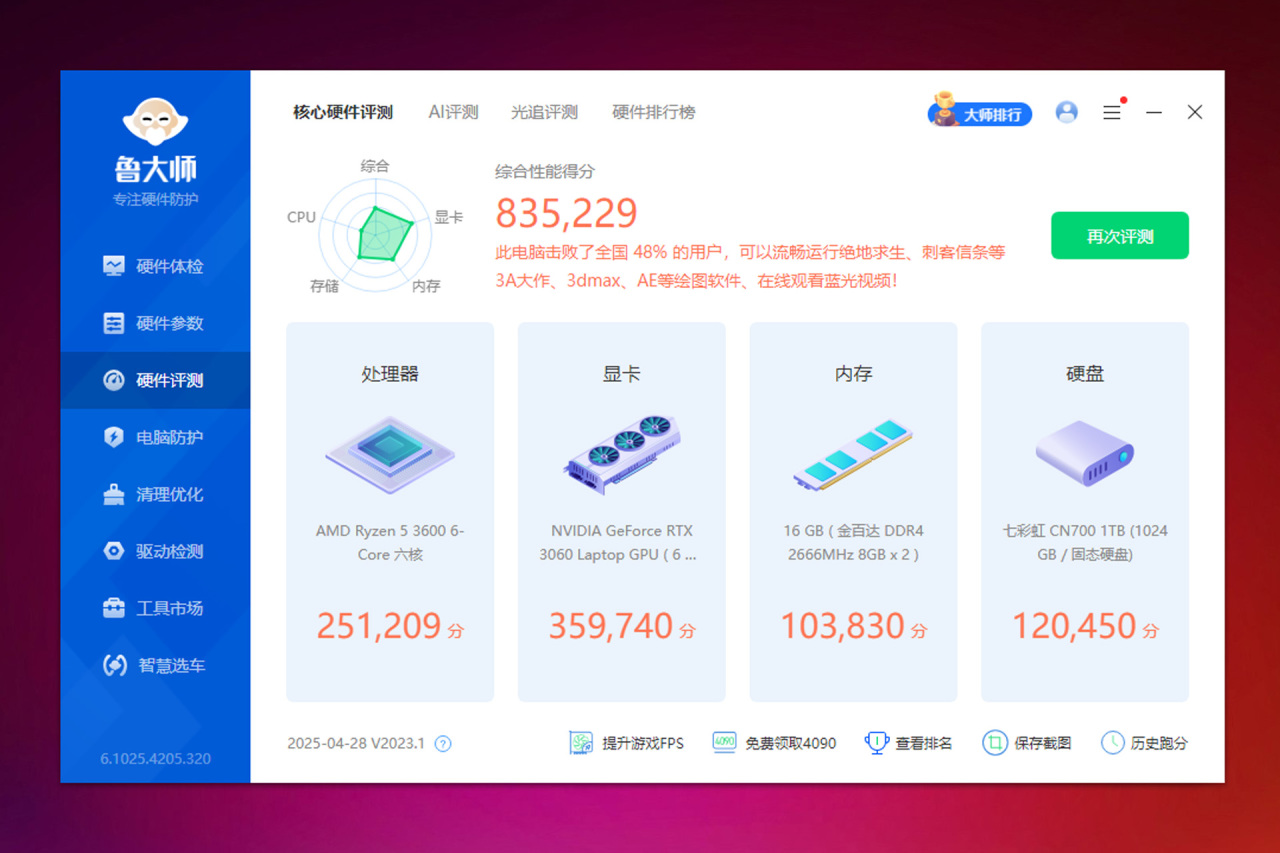 首先是魯大師做了個整機跑分,測試結果如下圖所示: