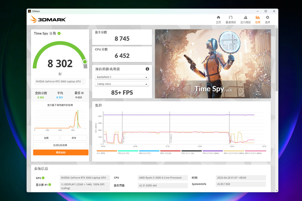 其次是針對DX12的TimeSpy模組,測試結果如下圖所示: