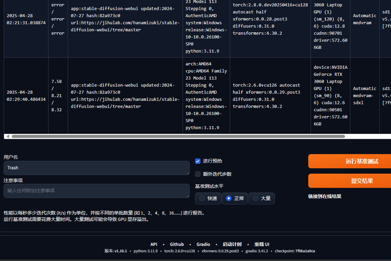 使用繪世版本自帶的Stable Diffusion Benchmark,使用Normal標準,測試結果如下圖所示: