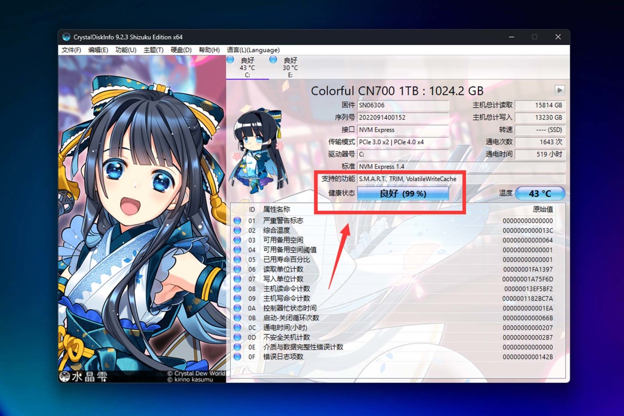 如下圖所示會有個健康狀態,低於80%別用就行,這只是個參考,部分奸商會賣清零盤,這類硬盤的健康度沒參考意義,經常藍屏可能就是有問題的清零盤。
