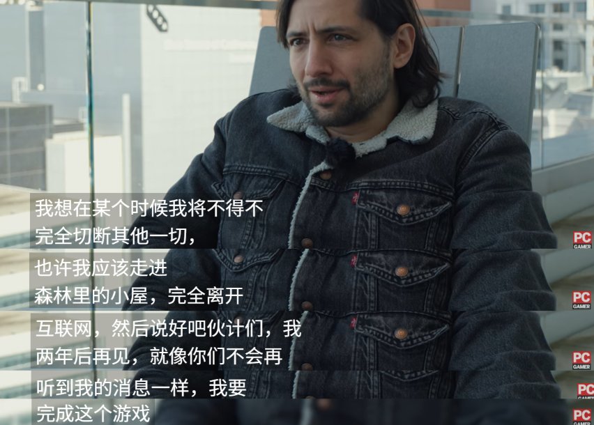 也是用了比較有趣的說法形容自己目前的狀態:"我在想,也許我應該搬進森林裏的小屋,完全斷網,然後跟大家說:OK夥計們,我們兩年後再見吧!除非我把遊戲做完了,否則你們別想聽到我的消息。"