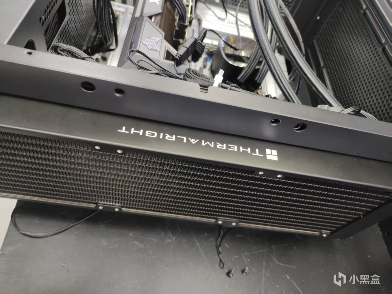 冷排裝不到頂部,只能裝正面,裝上去之後顯卡就塞不下了;還有這個冷排上的風扇,應該調轉180°纔對,讓線走到機箱背部去,這樣才美觀。