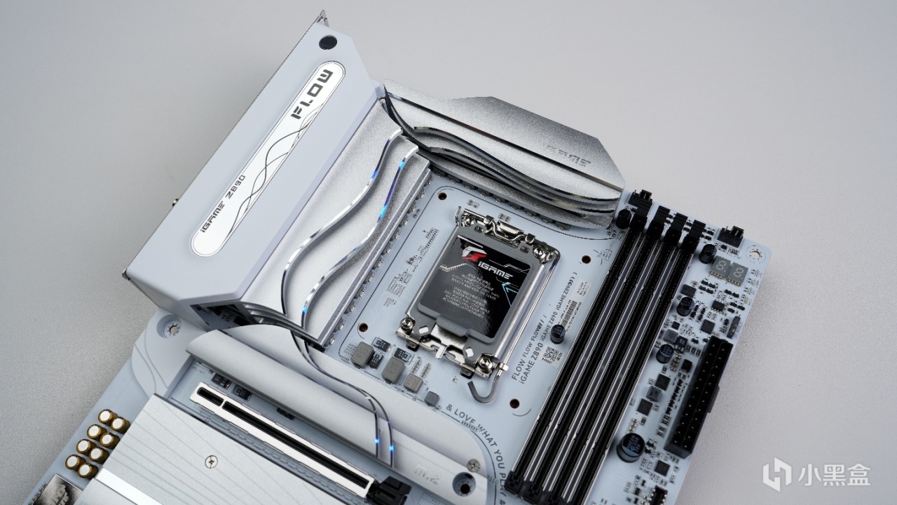 好顯卡離不開好主板,主板我也新購入了七彩虹iGame Z890 FLOW V20,銀白色裝甲與顯卡黑銀配色完美呼應,側透機箱裏顏值拉滿。20+1+1+1相供電輕鬆駕馭Ultra 7 265K,配合顯卡16Pin接口,超頻時供電穩如老狗。主板全覆蓋流螢M.2散熱裝甲,降低硬盤運行溫度,加載遊戲大場景時,速度比舊主板快30%,顯卡顯存還未發力,地圖已加載完畢。厚實散熱裝甲搭配顯卡三風扇氣流,長時間烤機CPU溫度穩在75℃以內,2.5Gbps網卡和Wi-Fi 6E讓網遊延遲大大降低,操作更加跟手。