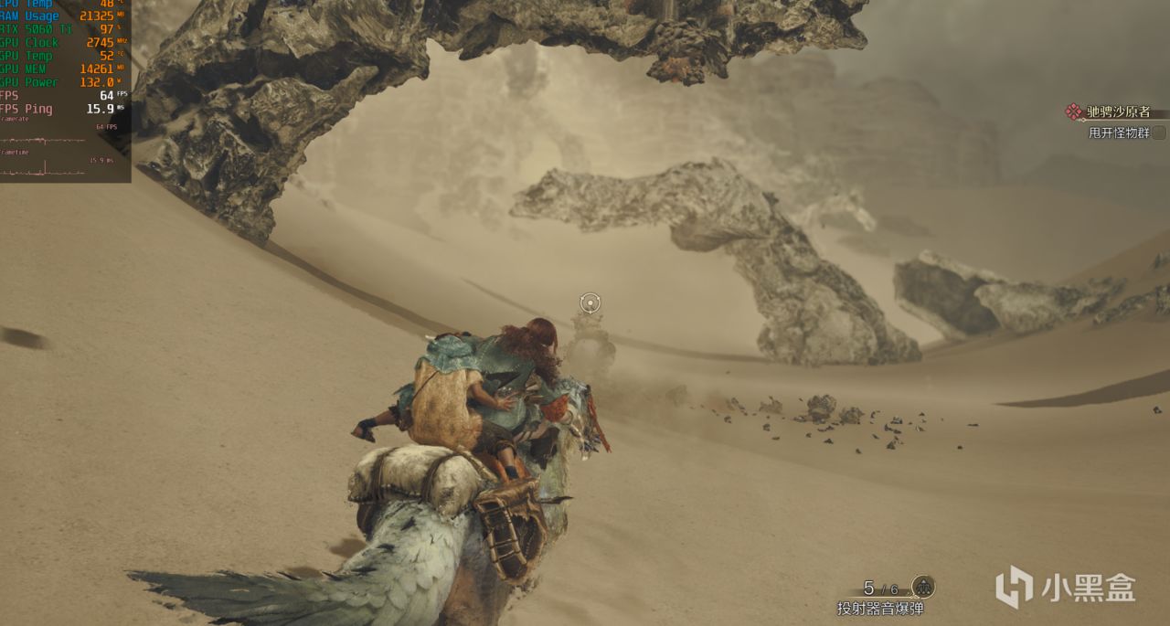 單機遊戲上我得好好誇一下,我開始對畫質沒抱太大期望,但還是想着試一試4K,開了DLSS也能玩就行,結果在嘗試後沒想到5060 Ti憑藉16GB顯存與DLSS 4輕鬆破局。怪物獵人荒野4K高畫質開光追,原生29幀,開啓DLSS質量模式後飆升至64幀,畫面細節與原生4K差別不大,損失是完全可以接受的,目前怪物獵人荒野是不支持DLSS 4的,如果是DLSS 4,幀數估計能到100去。