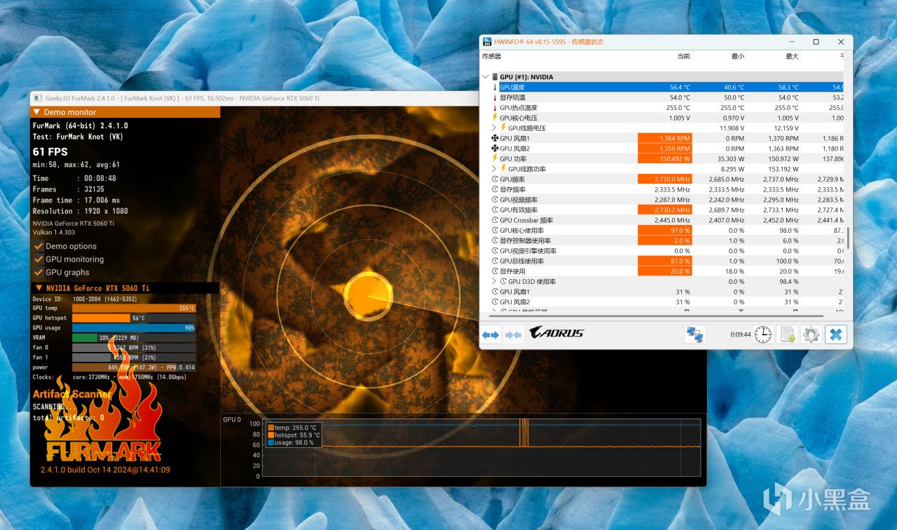 散熱表現同樣亮眼:夏天不開空調連續5小時遊戲,機箱側板僅溫熱,烤機核心溫度穩定在60℃以下,風扇轉速未超1400轉,噪音甚至低於筆記本,微星TRI FROZR 4 散熱系統名不虛傳。
