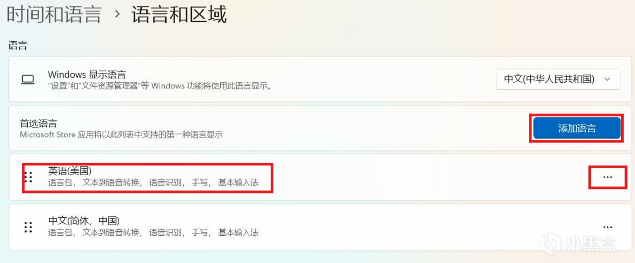 在【时间和语言】内【语言和区域】点击【添加语言】