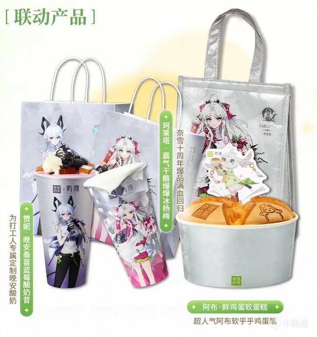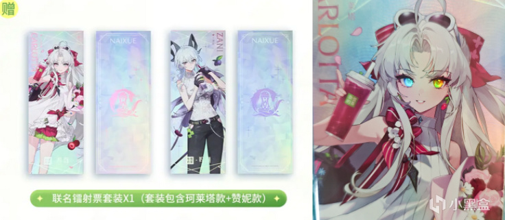 聯動內容方面,贊妮的茶飲是晚安桑葚藍莓酸奶昔,可惡,什麼叫爲打工人訂製的晚安酸奶,我要詛咒庫洛員工像贊妮一樣加班!小土豆這邊叫霸氣乾酪爆爆冰楊梅,真霸氣嗎?可是她個子還不到我的肩膀哎,阿布還有個鮮雞蛋軟蛋糕,阿布你擋住我看妹妹了。購買一款聯動茶飲贈送莫塔裏二人組聯動鐳射票,專門給小土豆眼部做了反光,能完美顯現歐泊漂亮的眼睛,MVP!兩款贈送聯動吧唧套裝,也是雙人一套。還有兩個平臺特供,若購買抖音團購套餐,加錢能獲得一個巨大號泡麪徽章;使用奈雪小程序購買周邊就可以獲取阿布遊戲頭像,可愛捏,注意購買渠道哦~
