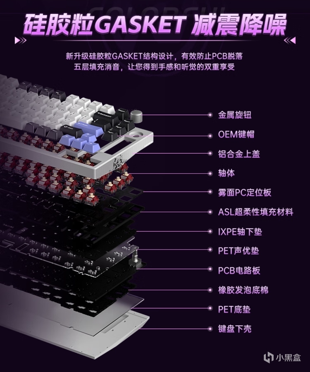 另外这个键盘采用的是硅胶粒gasket设计,试了下还是很弹的。