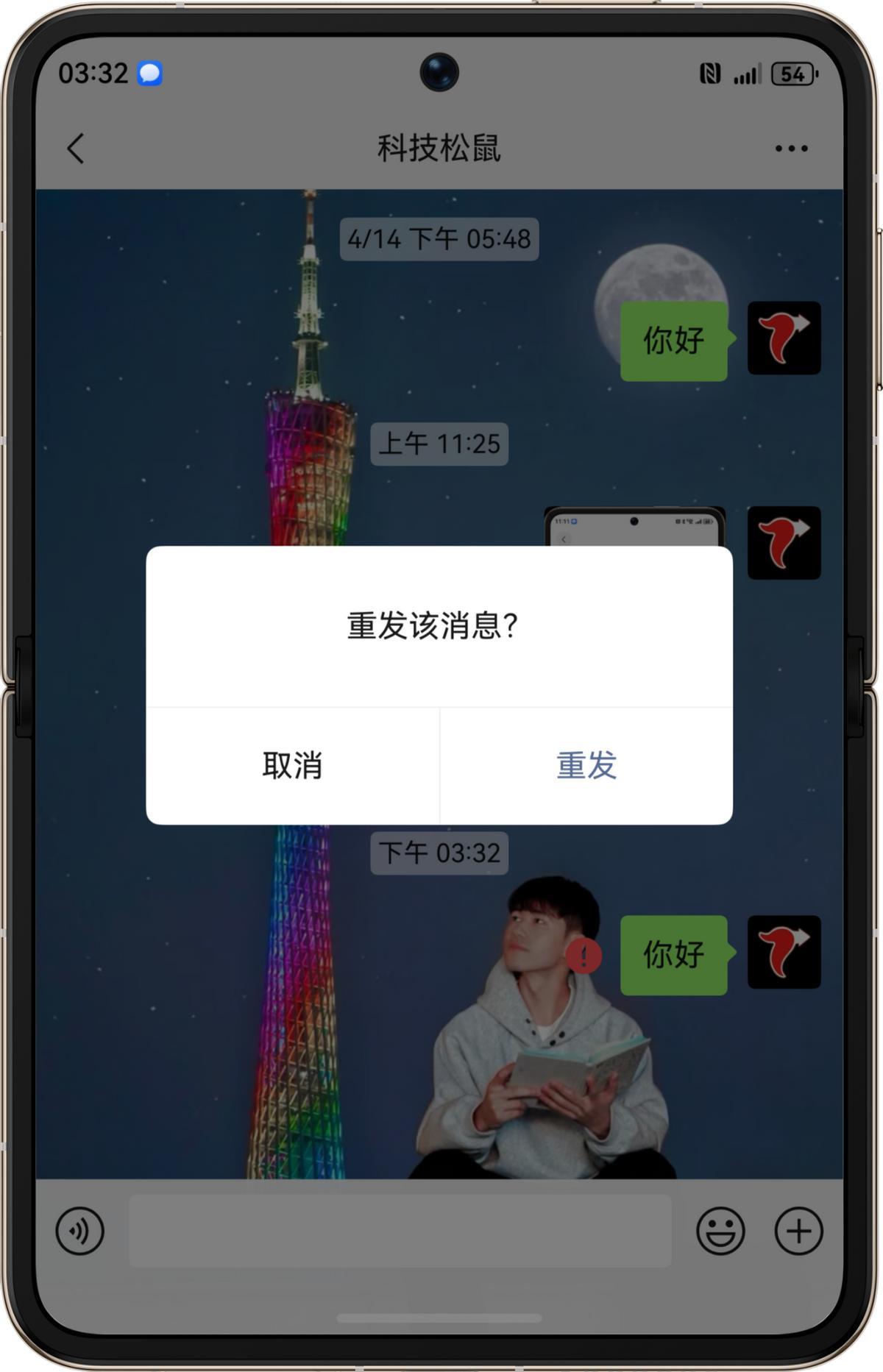 新增功能4:消息發送失敗後支持重發,由於網絡原因或者其他原因導致消息發送失敗,可以一鍵重發,不用像之前一樣先複製再粘貼。