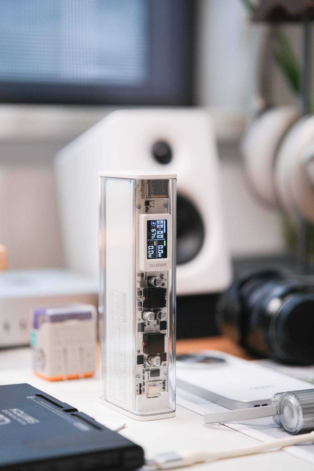 放在桌面上時,那塊LCD彩屏會根據充電狀態變換藍/橙光效,純白電路板與ROG光污染鍵盤形成完美呼應。小紅書「賽博桌搭」話題下已有300+博主用它當拍攝道具,評論區清一色「求鏈接」!