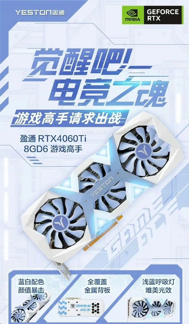 RTX 4060Ti则换成了淡蓝色,没那么骚包,但是显然也谈不上好看: