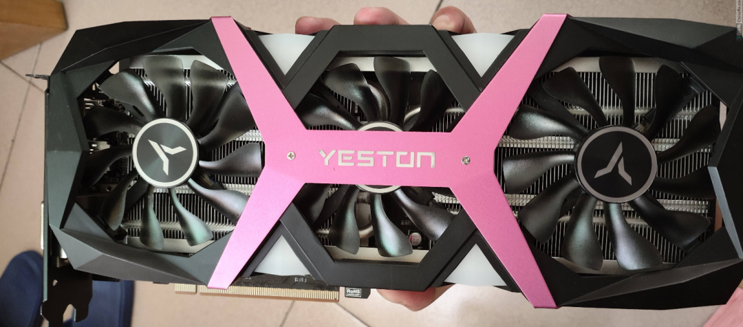 盈通官方宣称,新游戏高手采用了赛博朋克风格设计,拥有金属背板、四色呼吸灯以及背板渐变镭射贴纸,散热罩则由渐变霓虹色覆盖。但是吧,你这个背板贴纸贴个AI跑的男人,就算是面向集美们,是不是也不够诚意?
