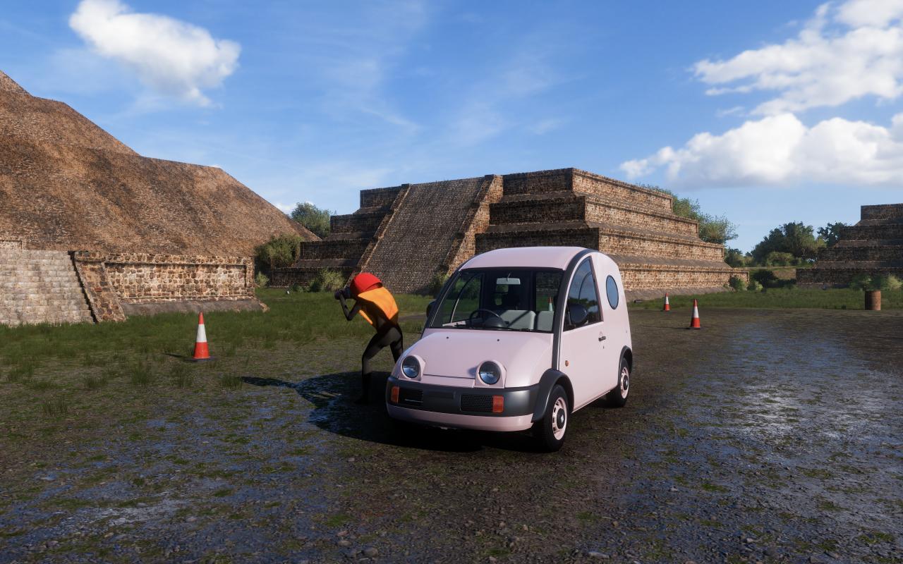 車庫篩選並駕駛"狂熱跑車",然後前往遺址內拍照打卡,挑戰至此完成。