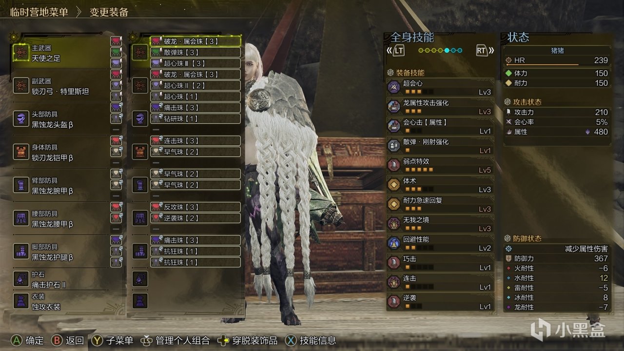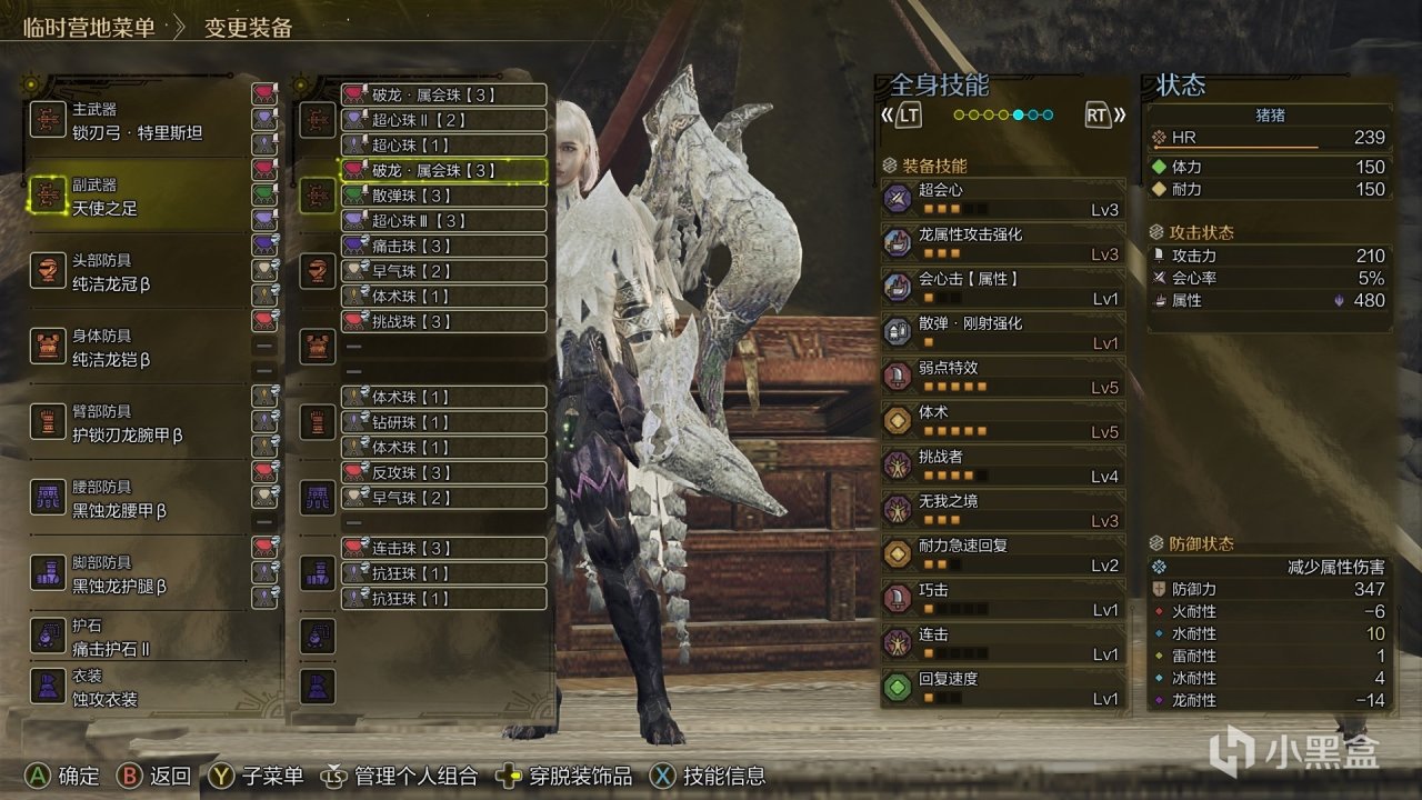 歷戰王煌雷龍帶來的變化是如果可以主動觸發力解,那麼可以無腦選擇出力解5,自帶的耐回非常適合弓箭。在力解5高會心下,武器的詞條及珠子更偏向物理。但是,如果不想主動觸發,還是推薦使用之前的配裝。其中黑絲4依然泛用,但單人耐力充足的情況下黑絲2弱特5加挑戰的組合傷害更高。在怪物有屬性攻擊的情況下,可以將一級挑戰換爲屬性變換。特別的,面對弱龍怪,三級屬變加上機械弓的高屬性可以玩一玩偏向屬性的套路。