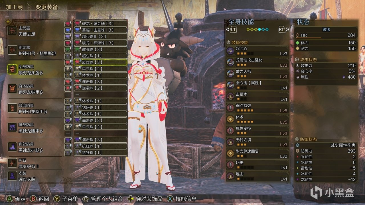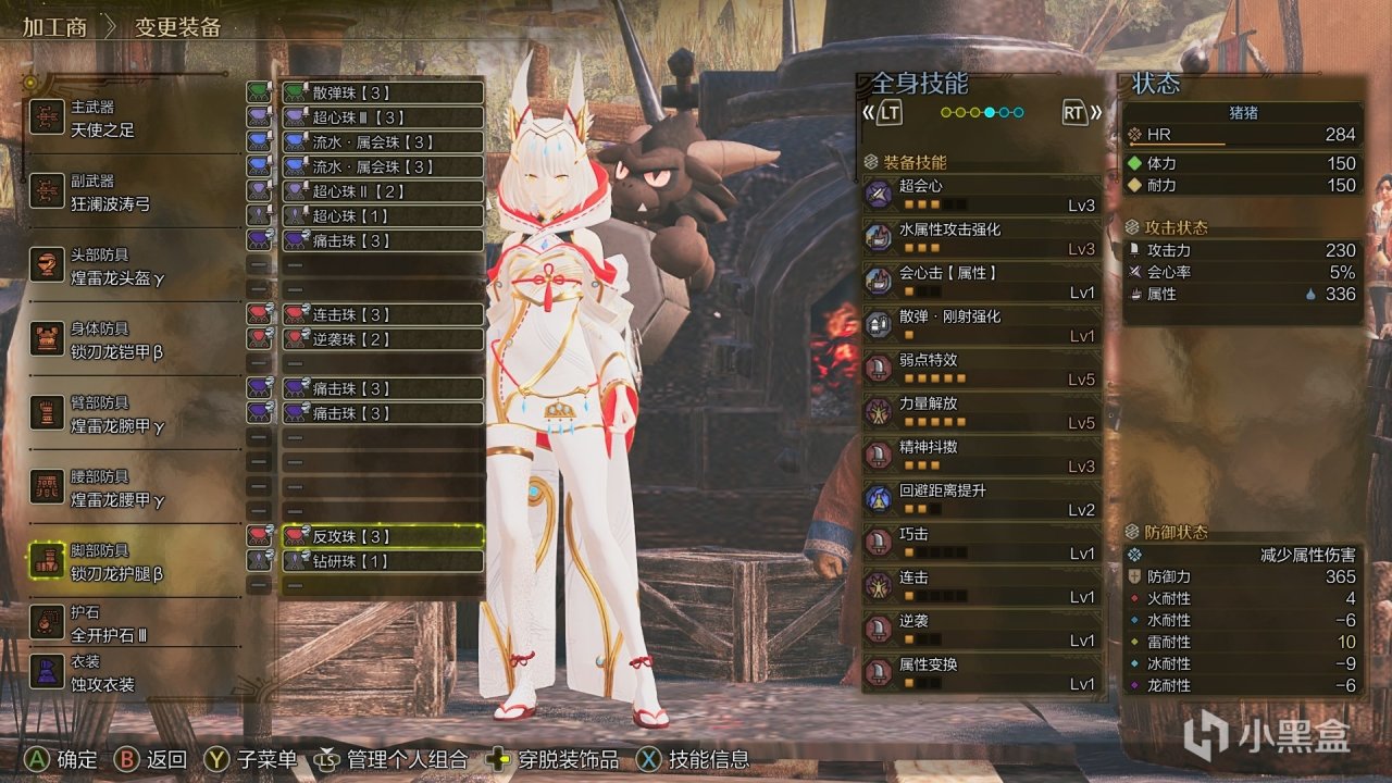 另外值得一提的是,力解套由於會心更高,機械武器的詞條優先級爲攻擊>屬性>會心,與上版本的配裝有所區別。珠子的選擇上,無腦先上一顆超心3一顆散彈強化,剩下一顆根據怪物的屬性/物理吸收,20/45及以上使用屬性強化3+屬性會心(或在有熟練流程的情況下使用強四射擊),15/45及以下使用超心2。