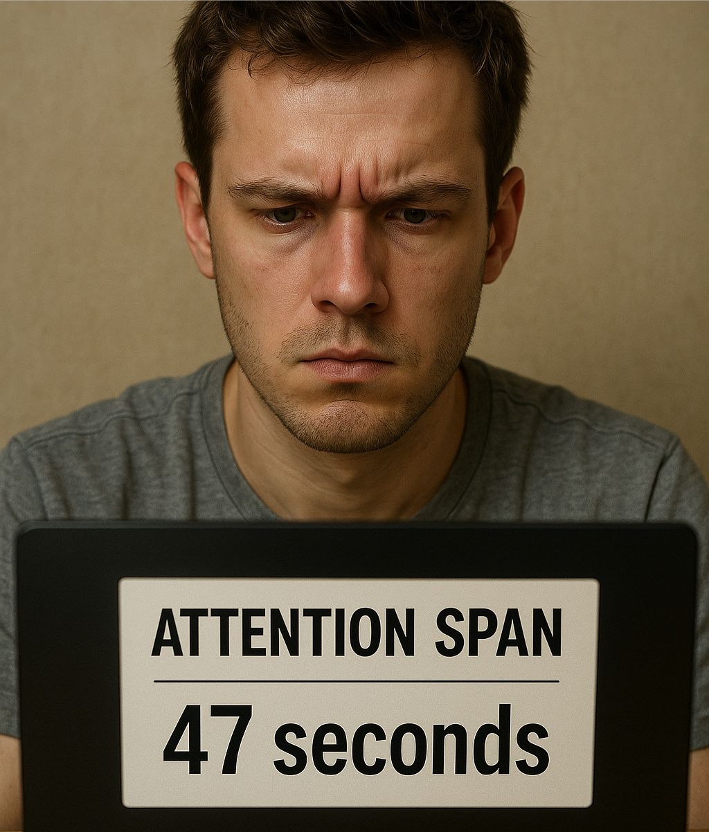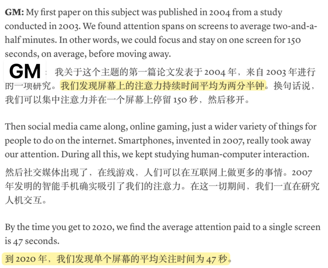 差評君查了一下,這觀點是加州大學信息學教授 Gloria Mark 提出的,他說 2003 年用戶在單一屏幕上的平均注意力時長是 2 分半。