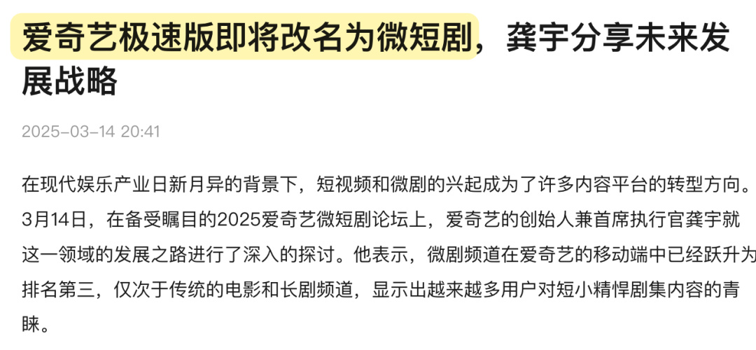 比如去年入局短劇,今年開始主推 12 集劇,極速版 App 也改名微短劇。