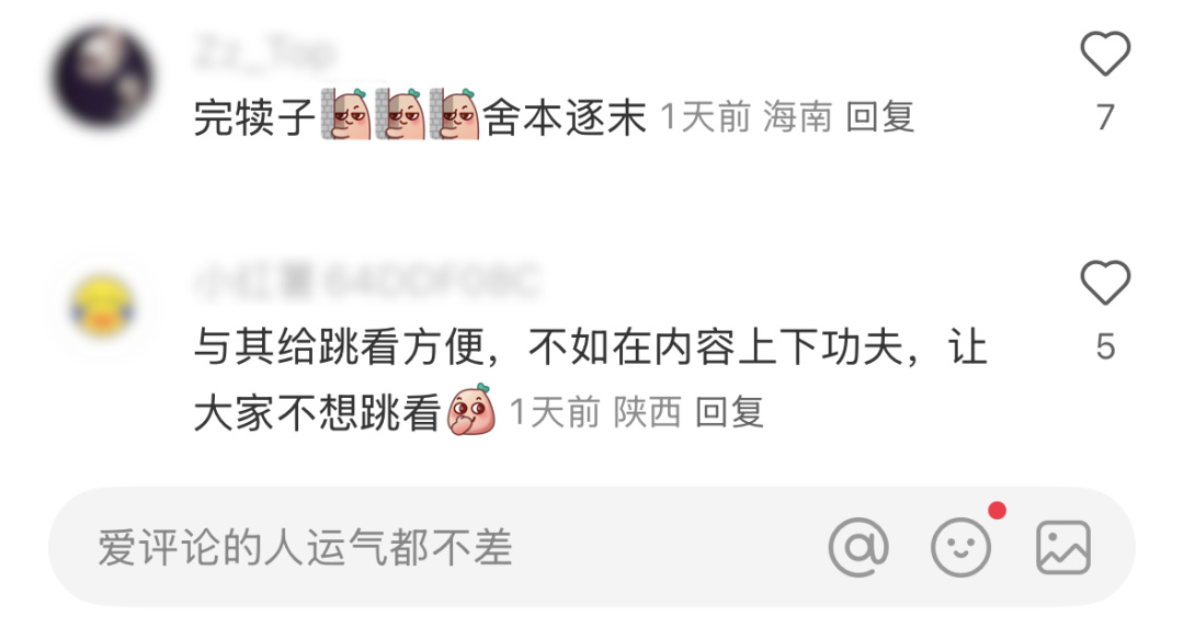 結果你吧唧一下,做了個功能,幫觀衆跳過不好看的內容,確實有點像網友說的那樣:本末倒置,捨本逐末。