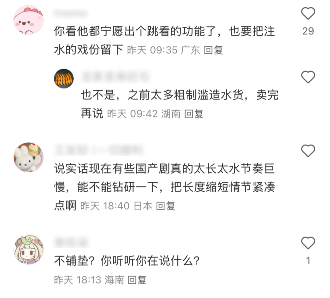 觀衆看不下去長劇,核心原因是劇情。畢竟先有的“對劇情不滿”,纔有的“觀衆跳過”。