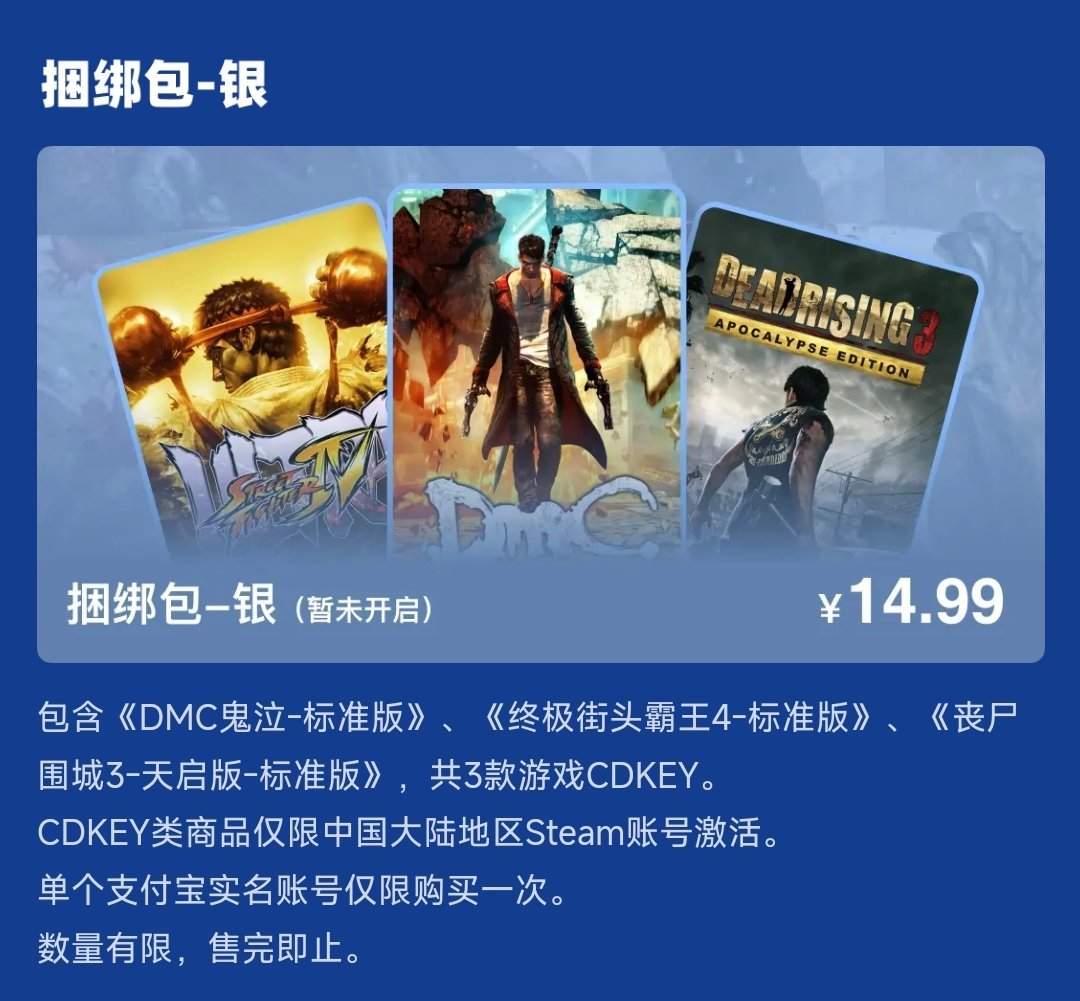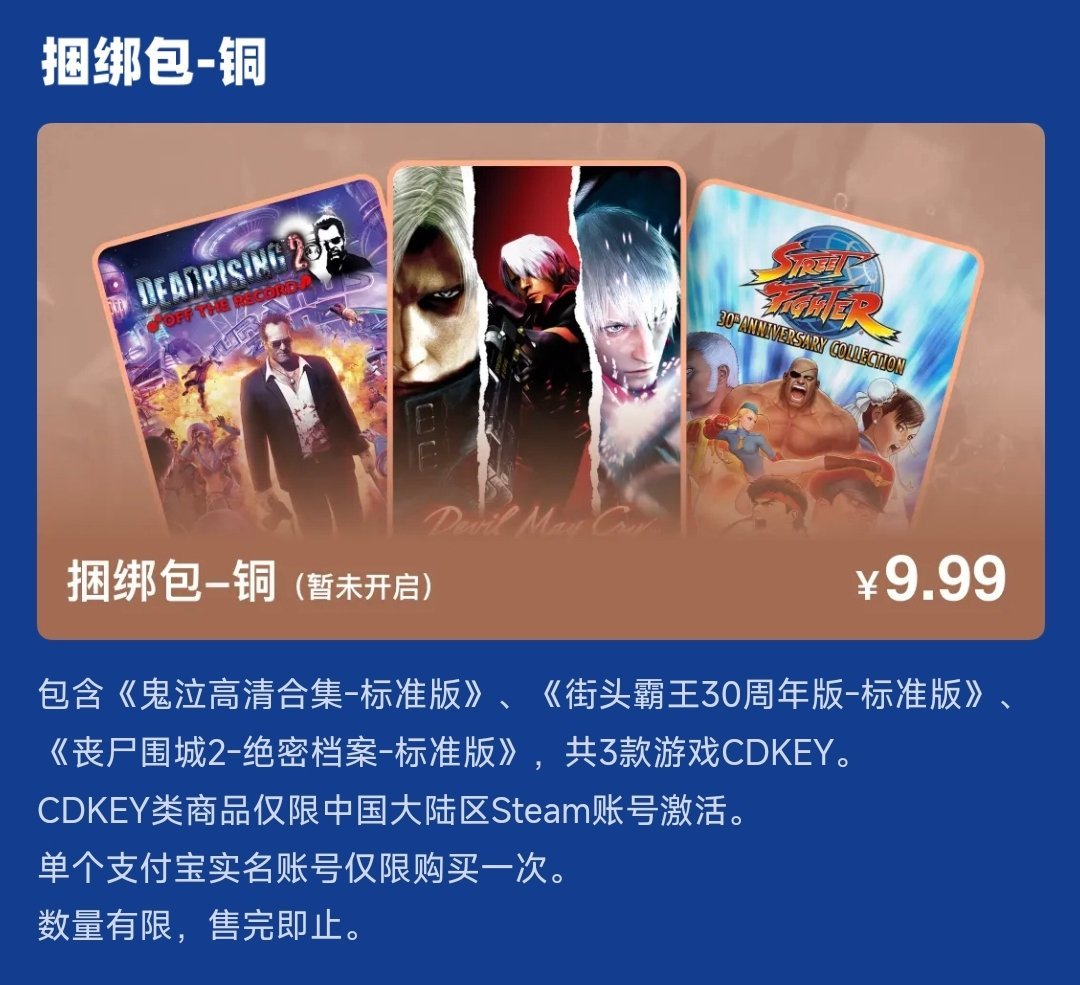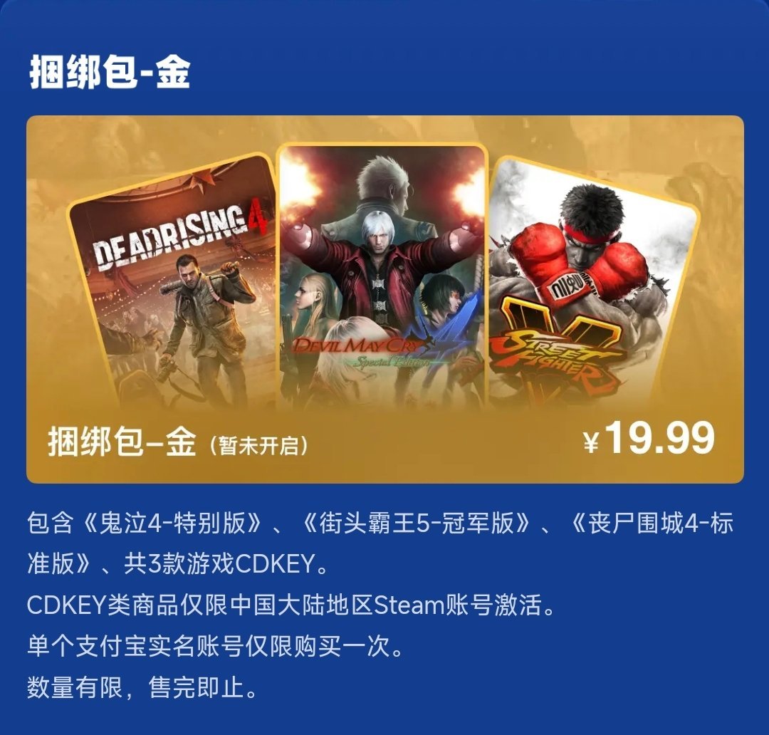 這個包如果用喜加一的角度來說,反而是最賺的!收藏意義遠大於實際遊玩意義,雖然只有三個遊戲,但是鬼泣合集是包括鬼泣123三部遊戲的,街霸30週年也是包含街霸4之前的所有作品,這個包絕對是經典中的經典了。