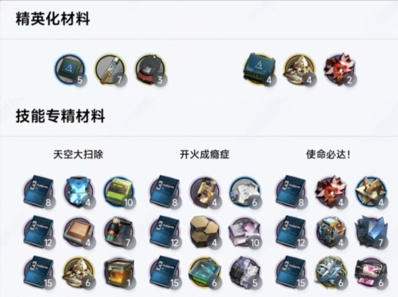 精英化,技能專精所需材料: