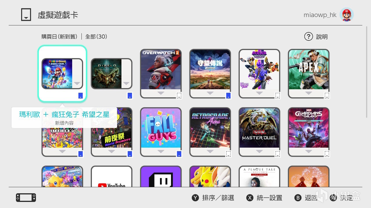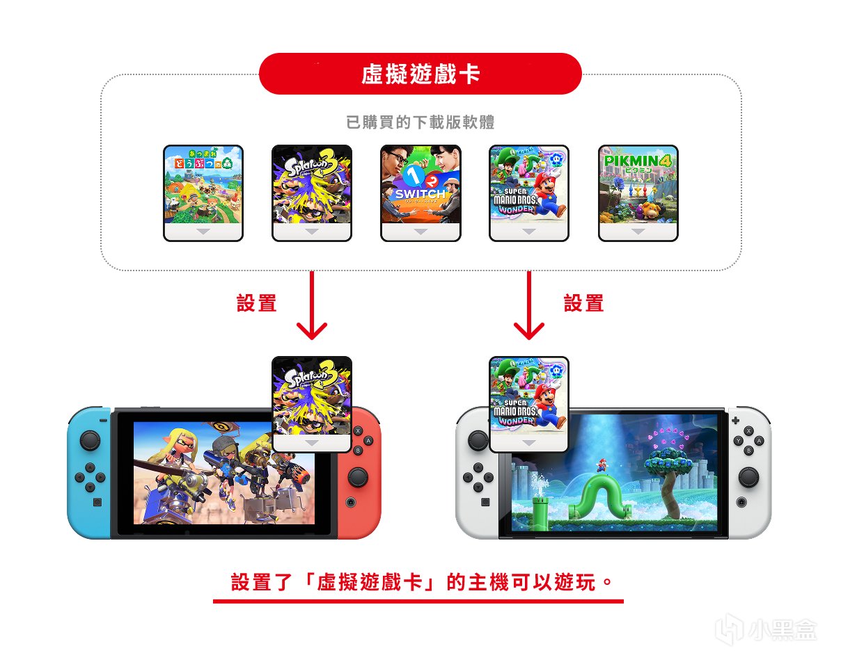 所有購買的數字版遊戲內容都會以“ 虛擬遊戲卡 ”的形式呈現,如購買的DLC(追加下載內容)或通過實體卡兌換的遊戲內容也會以“ 虛擬遊戲卡 ”的形式存在。