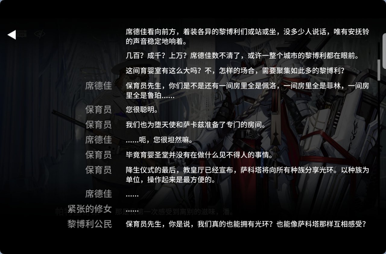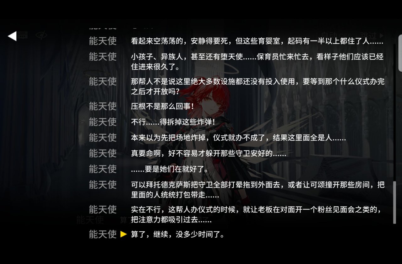 不想正在裝炸彈,裝完還得拆炸彈的能天使被教宗騎士當場逮捕,這時那位薩卡茲媽媽出現,讓能天使大喫一驚,她一直以爲今天那個降生儀式將要降生的孩子是屬於這個薩卡茲媽媽的,