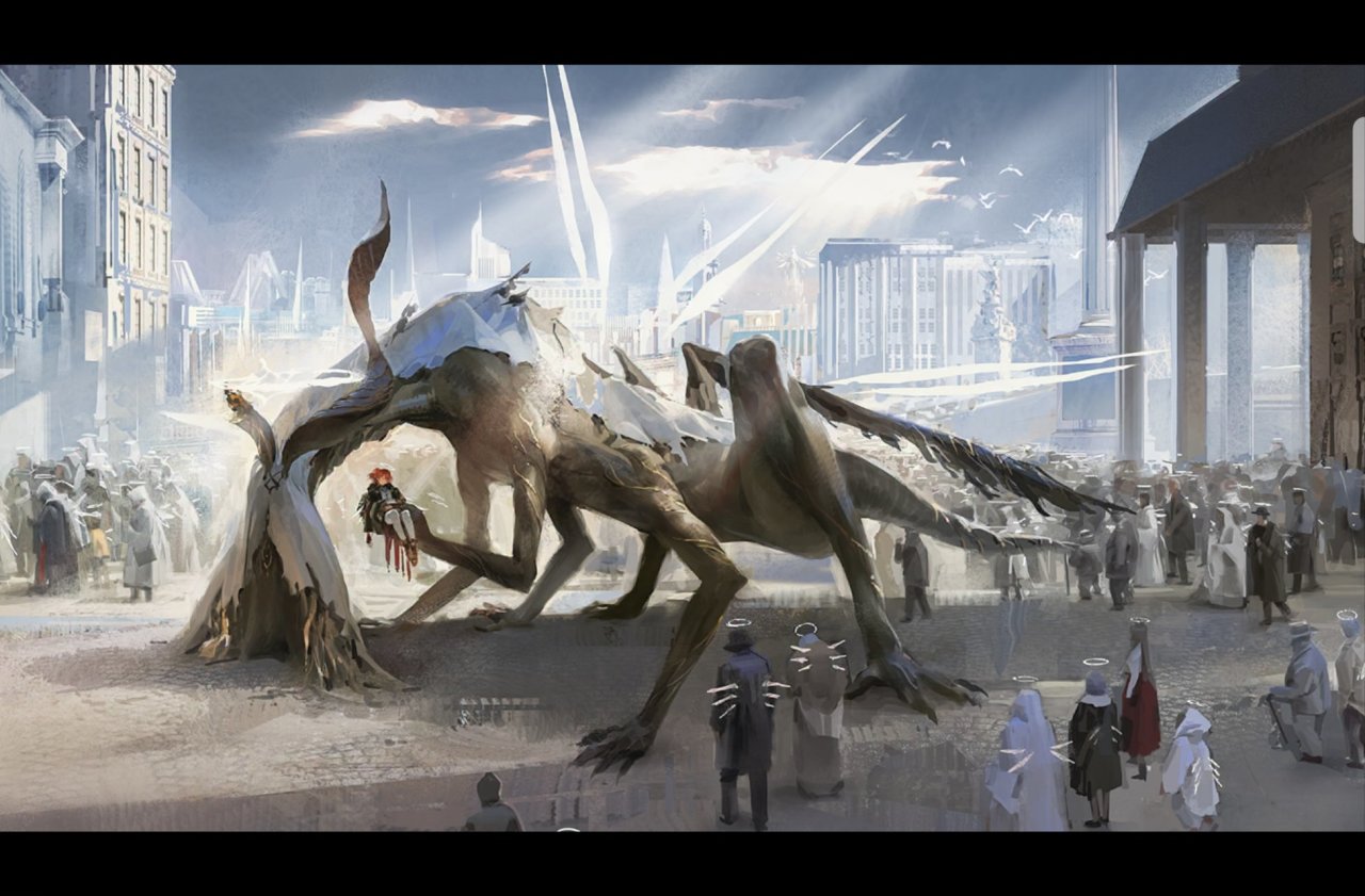 而菲亞梅塔,莫斯提馬和蕾繆安則是說服了墮天使們開始轟炸街道上陰暗地爬行的古神牧首。