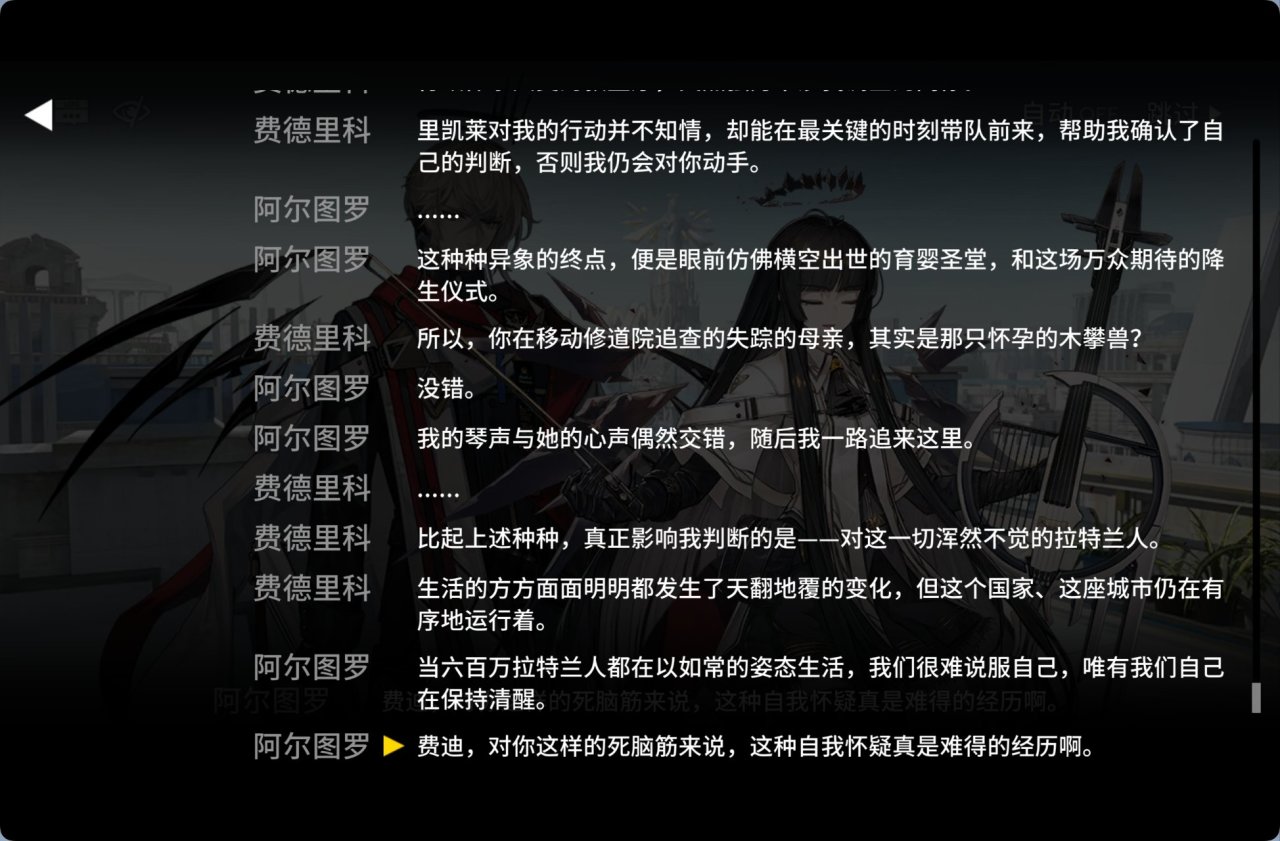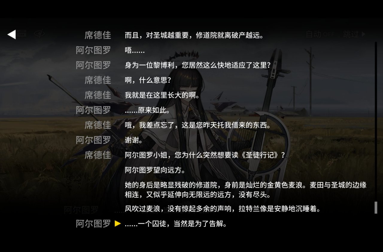 另一邊正在老登修道院勞改的阿爾圖羅短短一個早上已經割了6壟麥子,不愧是泰拉人,我小時候割水稻只能割一壟就不行了。而且鷹角似乎覺得割麥子的勞改犯立繪里帶着一個賽博二胡也沒有什麼違和感,於是阿爾圖羅和前來送飯的空弦開始了哲學探討,探討內容大概如下。