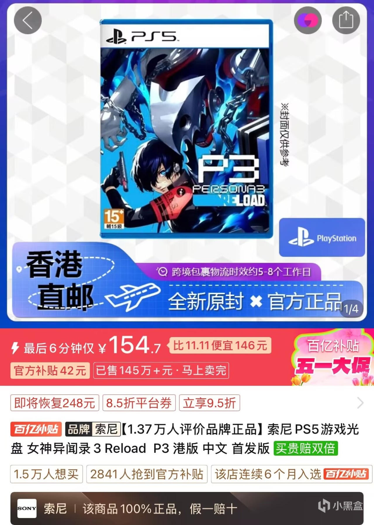 3.PS5遊戲《女神異聞錄3重製版》港版中文154.7元全新包郵,該作是當年PSP經典遊戲的重製版,喜歡日式RPG的玩家可以入手,個人感覺PS5女神異聞錄系列性價比挺高的,特別是150左右價格就可以買了。