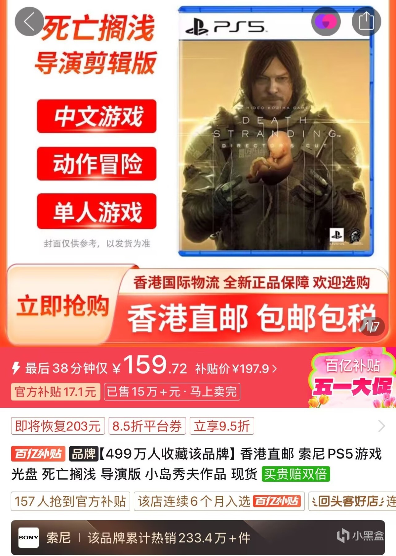 1.PS5遊戲《死亡擱淺:導演剪輯版》港版中文159.72元全新包郵,目前算是好價,想要再便宜一點的朋友,並且不介意日文遊戲封面的可以買日版中文,行情價再便宜個10元左右。