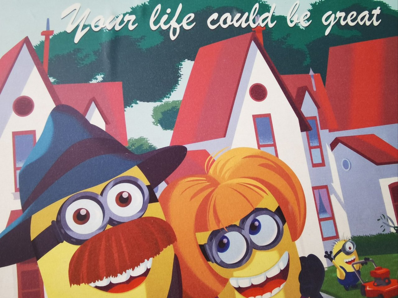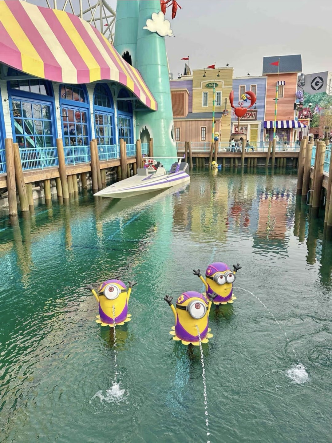 接着lz前往了小黃人區,經過漫長的等待,終於體驗到了小黃人鬧翻天,沒想到進去後還要站着看兩個劇情介紹(10分鐘左右)看完後才能真正開玩,具體就是類似一個4D電影,如果不是真心喜歡,還是不太推薦