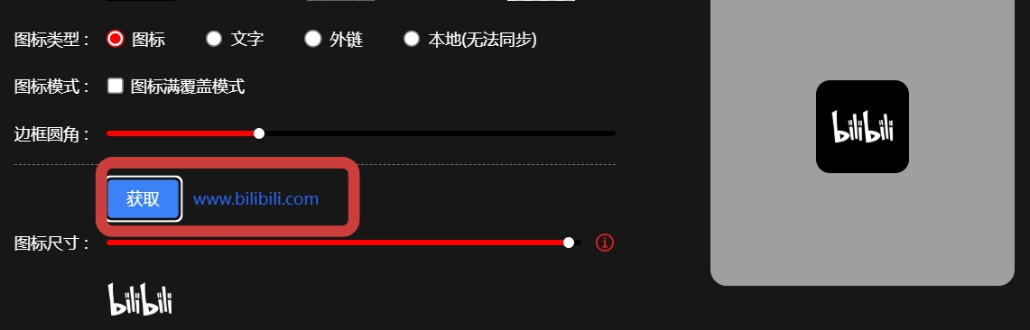可以直接獲取網站的圖標,只不過有些網站的圖標和軟件不同,會是黑底(例如嗶哩嗶哩,小黑盒),也可以使用本地圖片作爲圖標,另外,有的網站可能無法跳轉,比如lz試過的一個免費影視資源網站