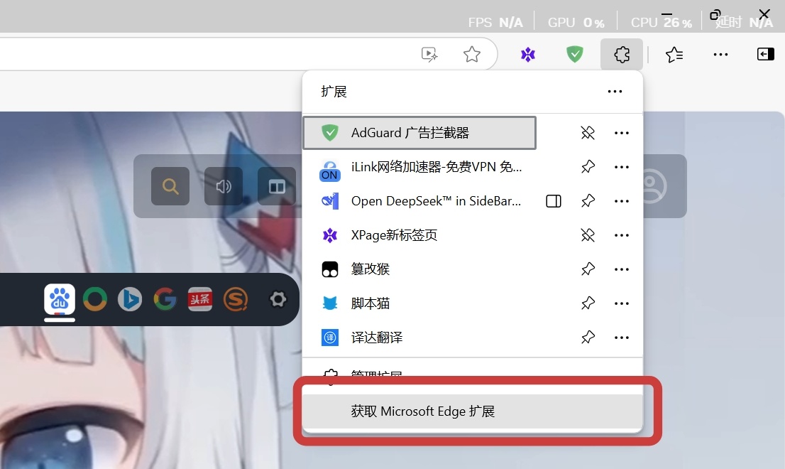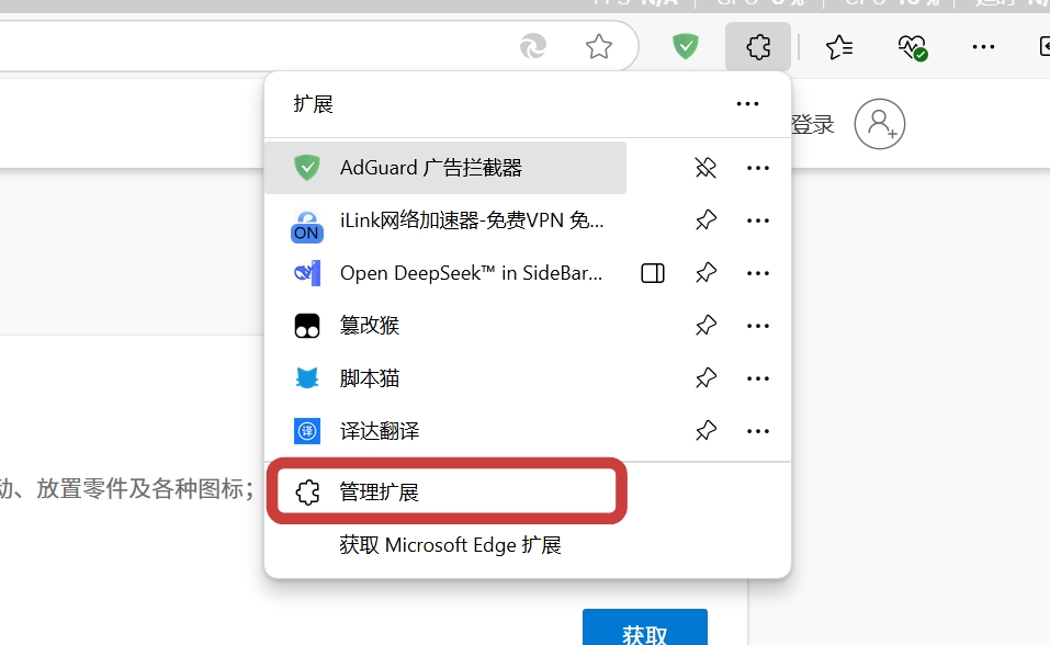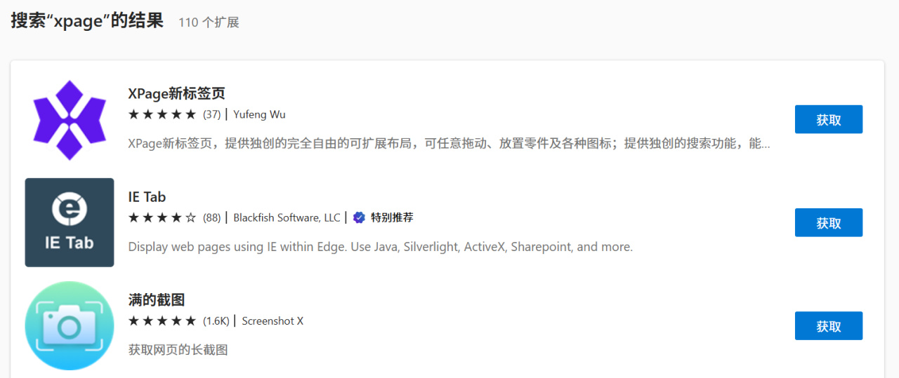 點擊一下,我們點最底下的獲取Microsoft edge擴展