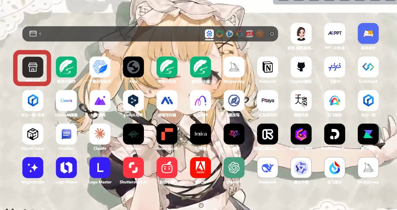 不過這個分頁欄也大有用處,通過滾動鼠標滾輪可以快速切換在AI這一分頁有許多AI,可以直接跳轉AI相關的網頁