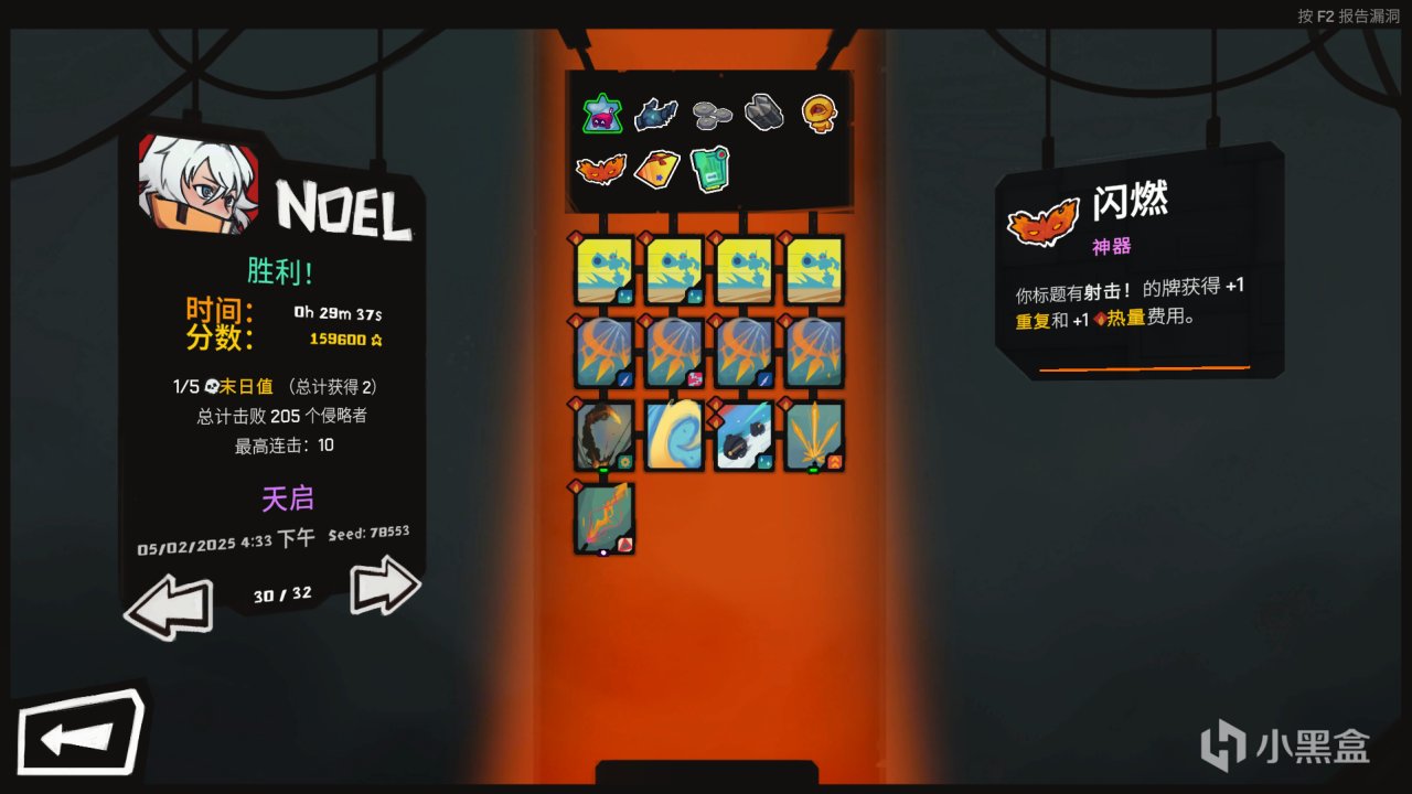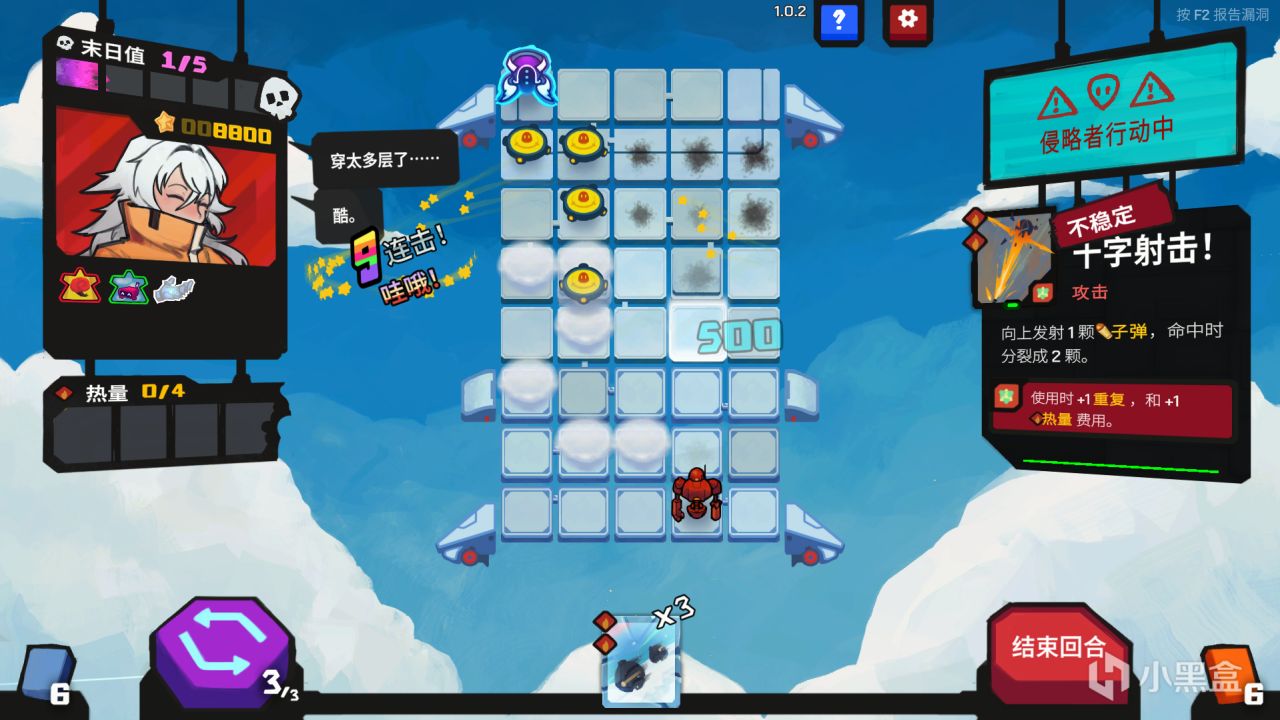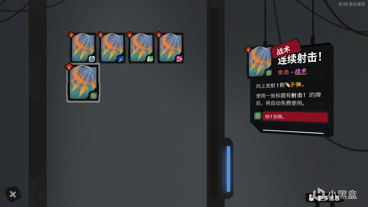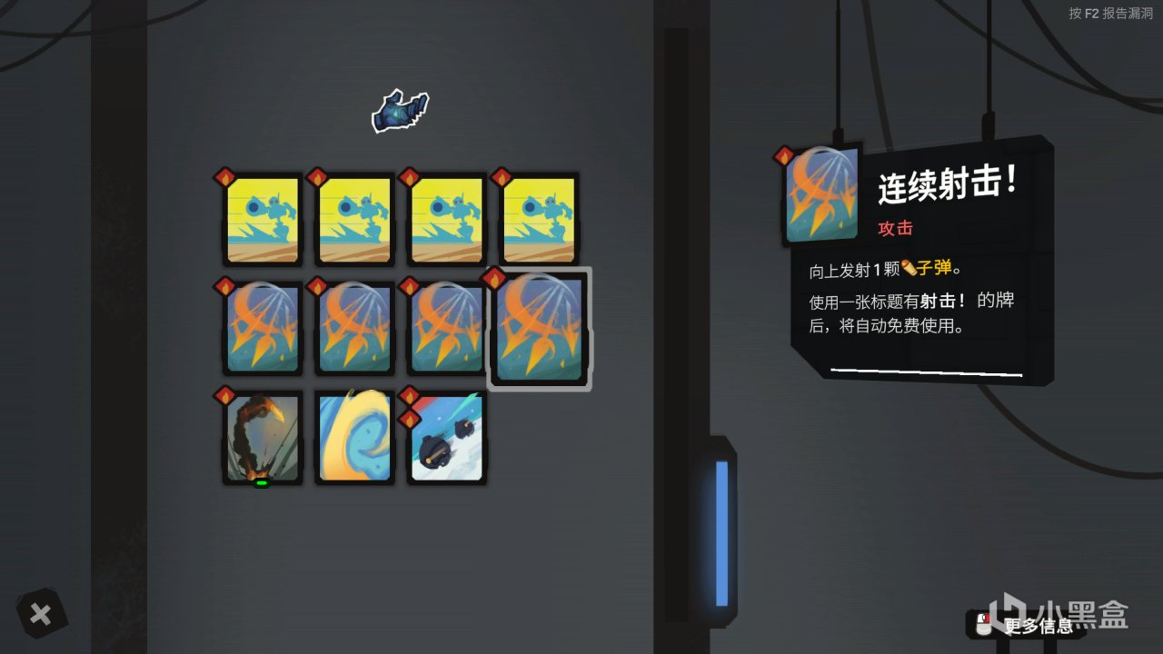 玩法思路就是靠射擊卡觸發快速射擊,再配合各種卡的重複特性,用極少的燃料使用掉一堆的卡牌,最後達到清屏的效果。