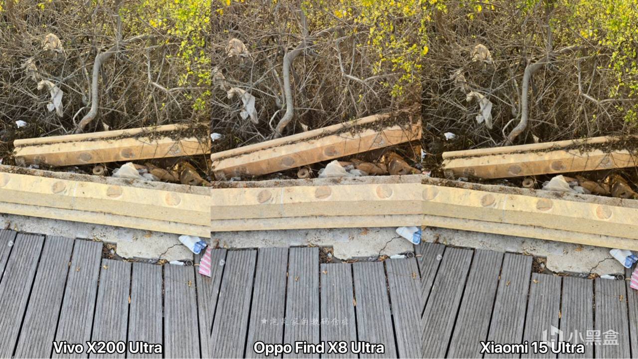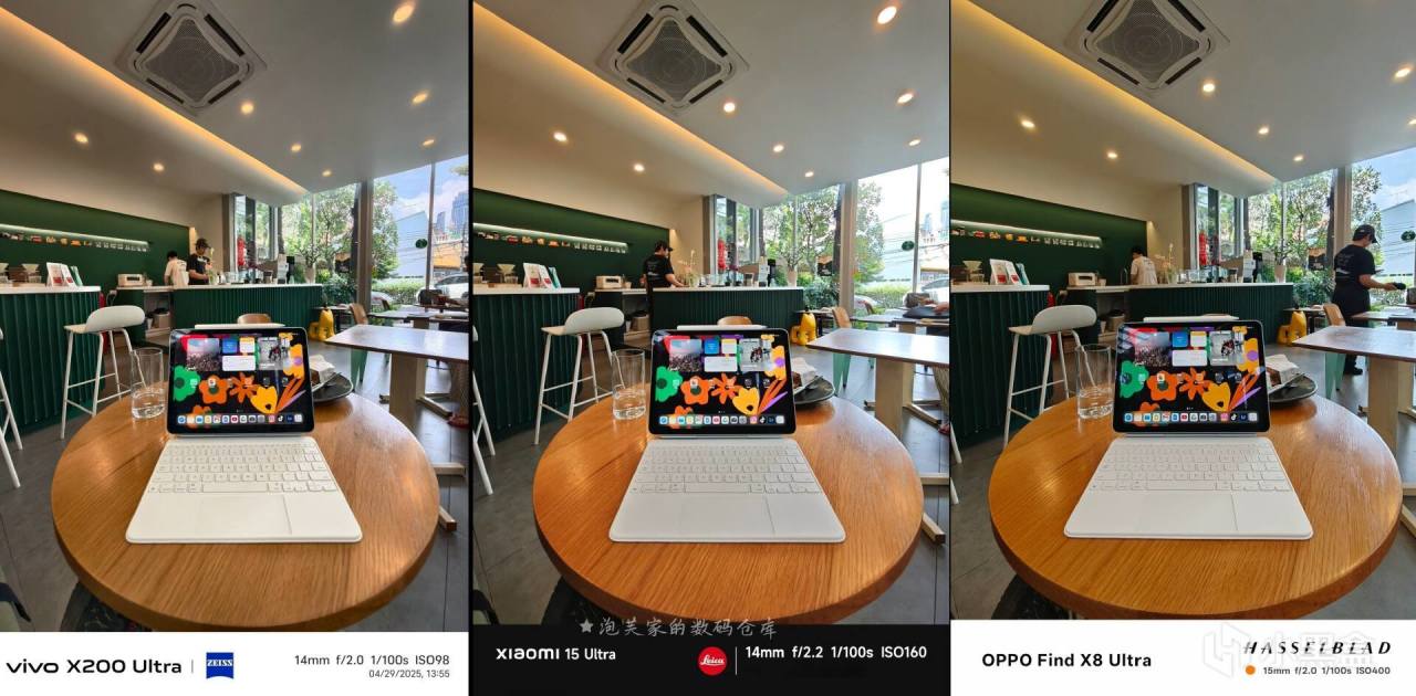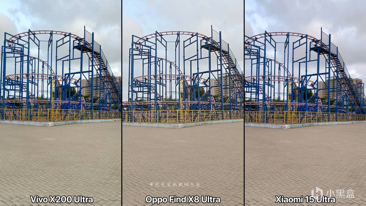 對比總結——vivo超廣角憑藉最大的傳感器尺寸(1/1.28英寸)與蔡司鍍膜,在畫質、抗眩光和色彩還原上全面領先;OPPO傳感器尺寸(1/1.56英寸)與光圈(f/2.0)表現優於小米,畫面整體素質較好;小米傳感器尺寸最小(1/2.76英寸),光圈較小(f/2.2),超廣角畫質在三者中相對最弱。