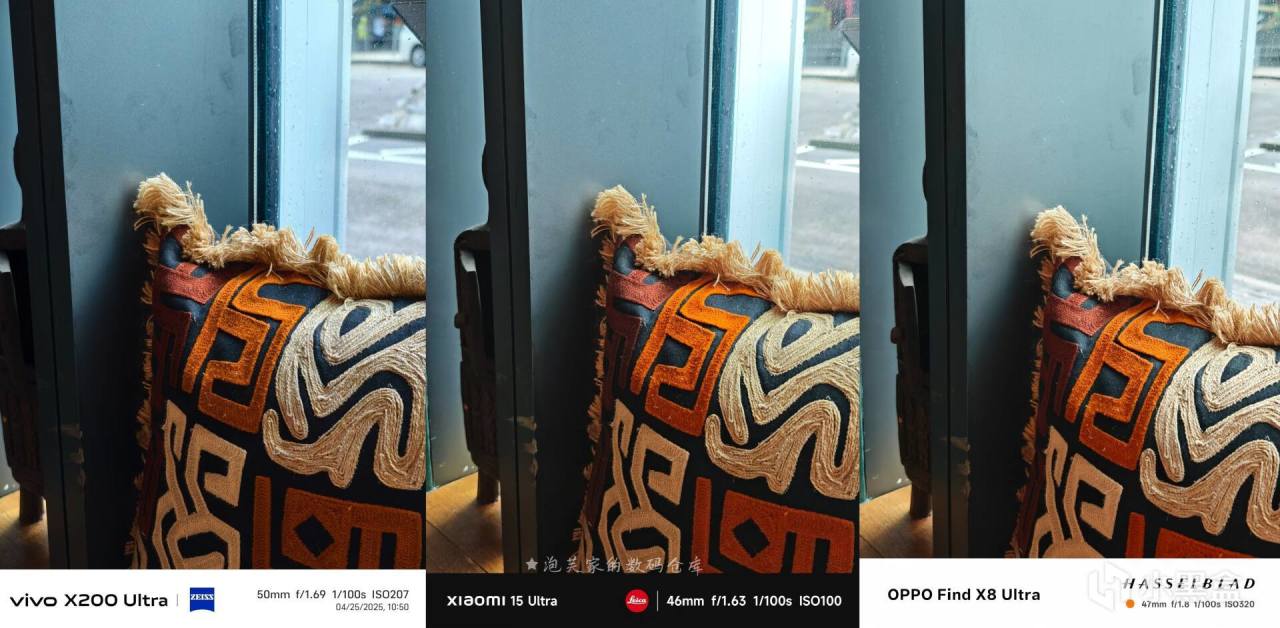 小米15Ultra——採用三星S5KHP9傳感器,2億像素,1/1.4英寸大底,f/2.6光圈,支持OIS光學防抖。同樣的傳感器與大底,但光圈較小(f/2.6vs.f/2.27),進光量稍弱,長焦畫面的亮度與背景虛化效果略遜於vivo。