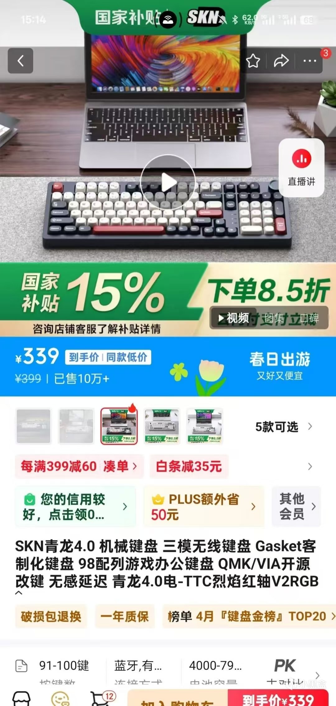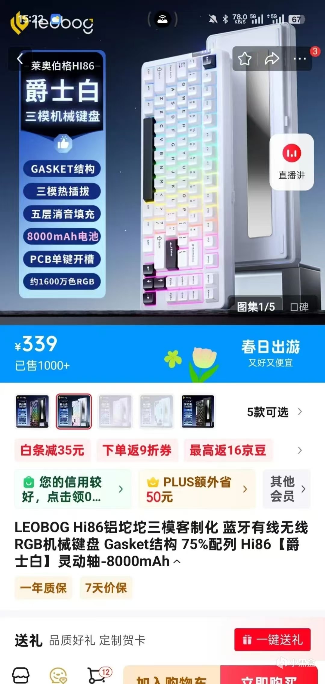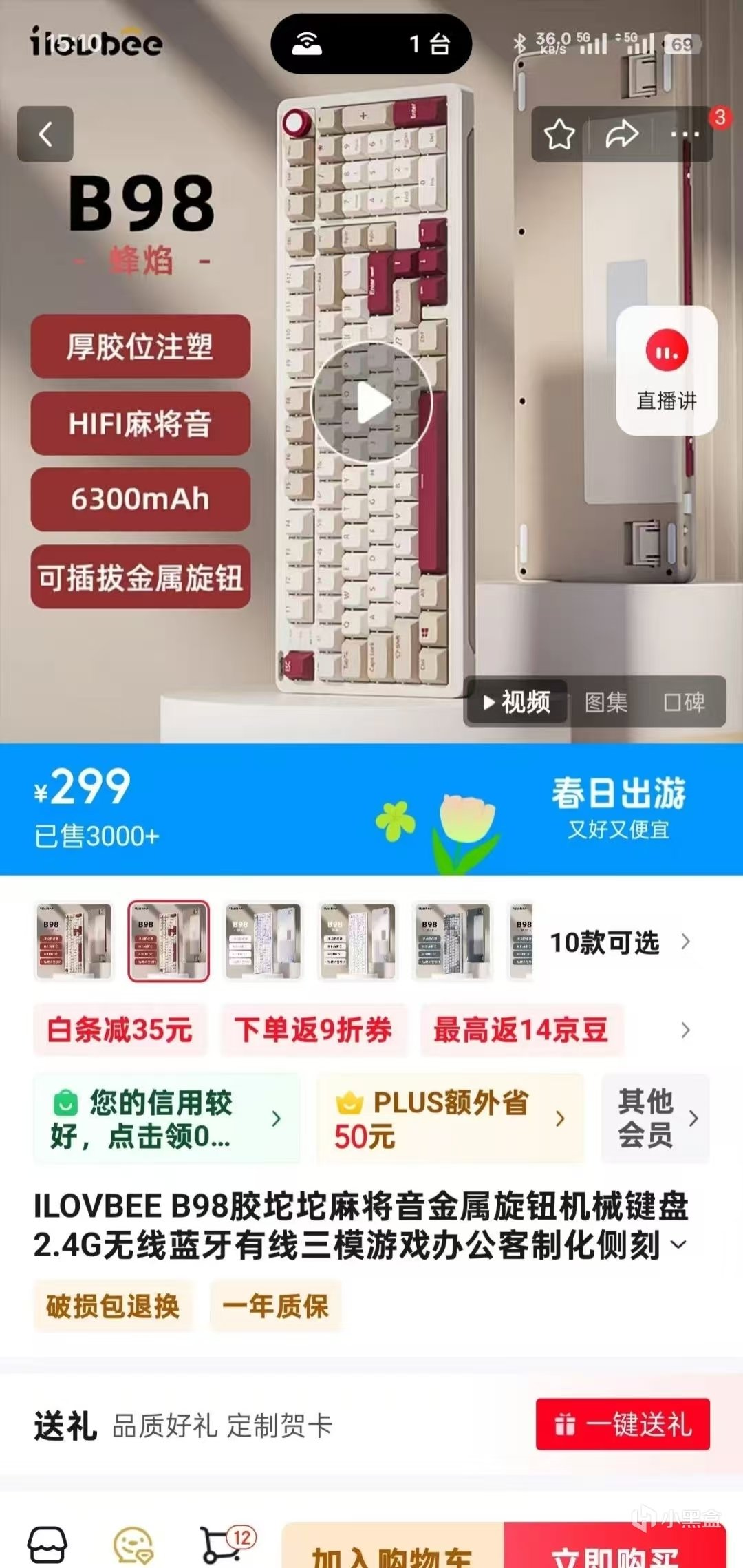 优点:98配列,三模无线,音量旋钮,gasket结构,自研轴座,满配填充,低延迟,同价位里轴体很棒