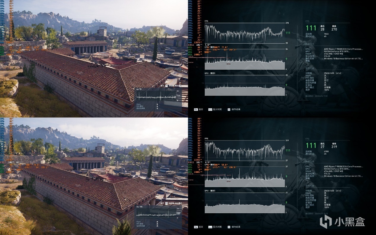 ▼衆生平等奧德賽,2K分辨率,全極高畫質,體積雲最低,默認和PBO2遊戲幀數完全一樣,都是111幀,只不過PBO2後,最高幀要高一些。