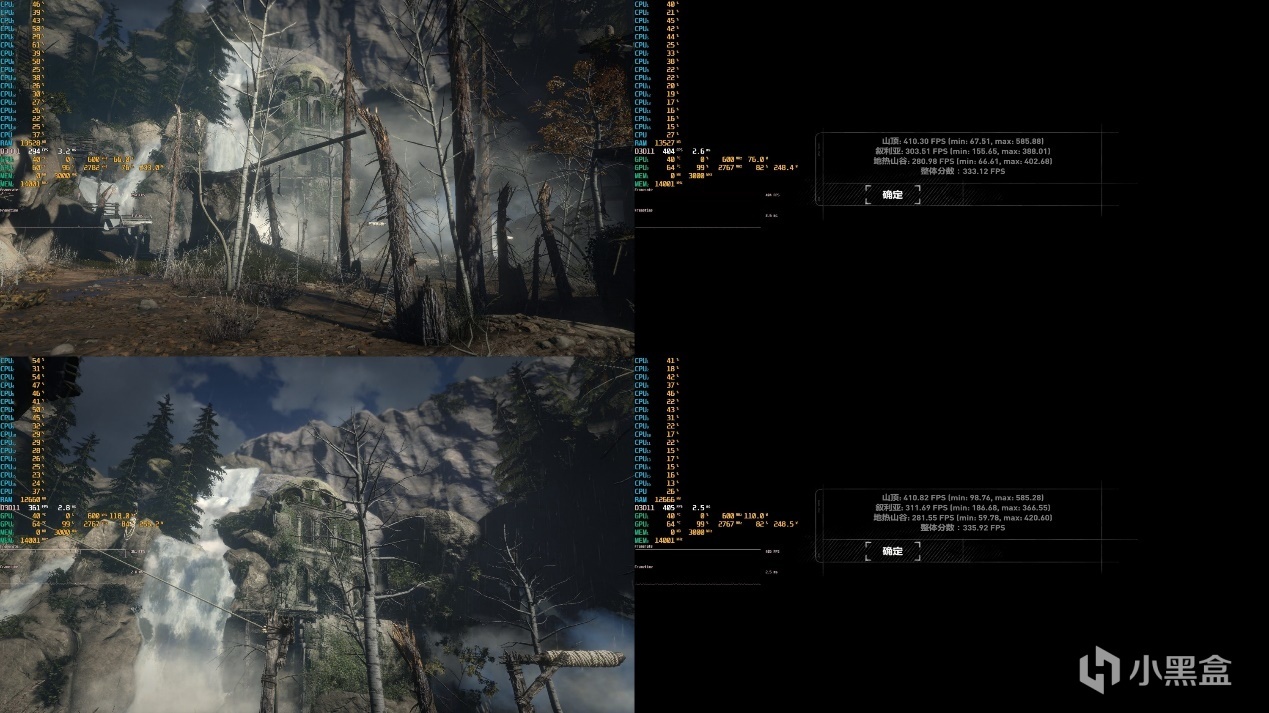 ▼古墓麗影,2K分辨率,全高畫質,整體的遊戲幀數提升也很有限,從333.12幀提高到335.92幀。
