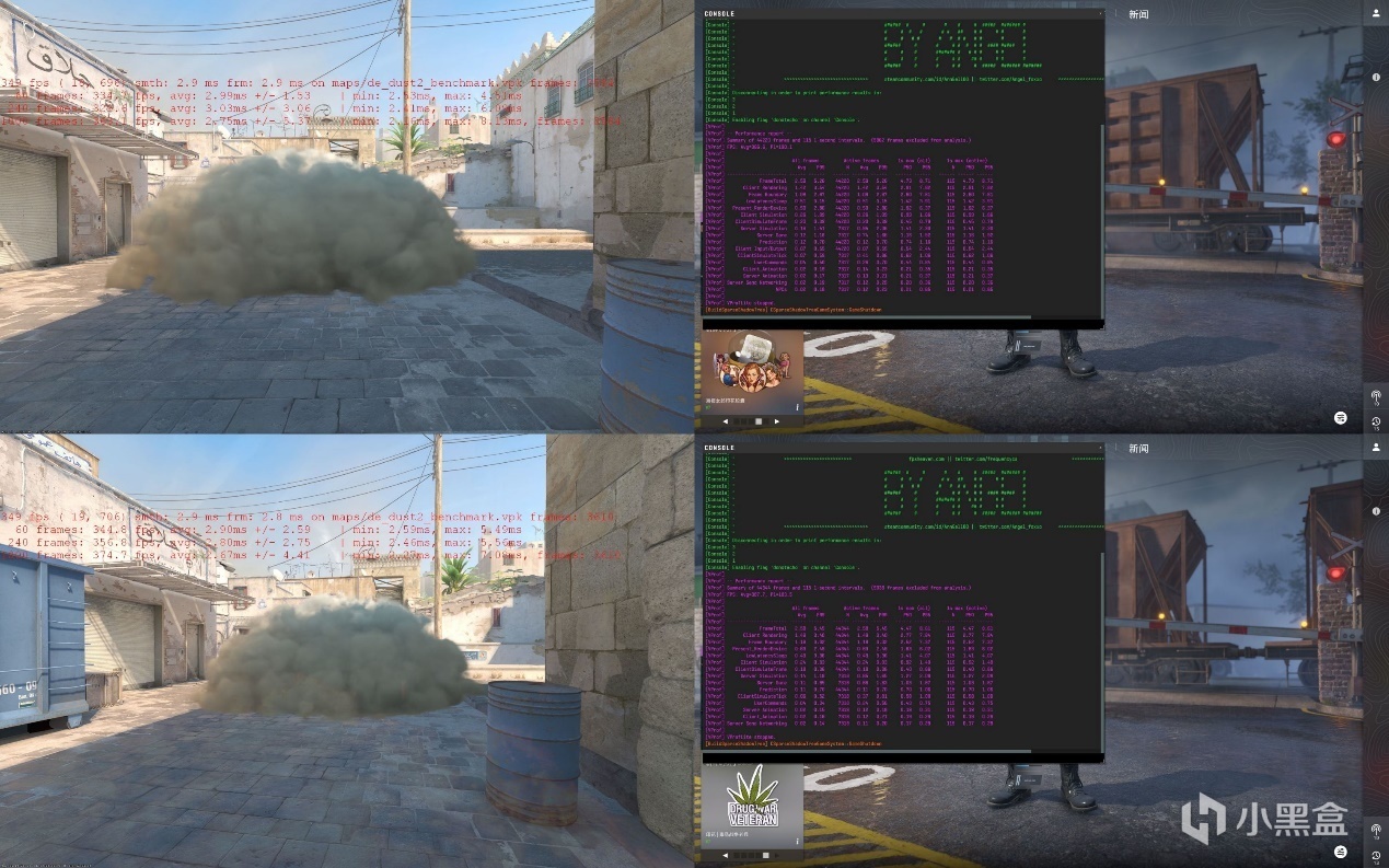 ▼先試試CS2,2K分辨率,高畫質,默認情況下平均遊戲幀數386.6、1% low幀190.1,PBO2之後,平均遊戲幀數提高到387.7,1% low幀降低到183.5,很難崩,平均幀提升一丟丟,low幀降低蠻多的。