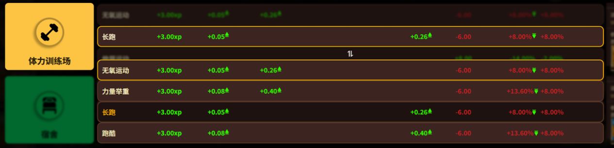 而每個訓練場的大類別下又分成了不同的小類,方便時刻對他們的數值做出調整,爲每個人定製自己的專屬養成計劃。